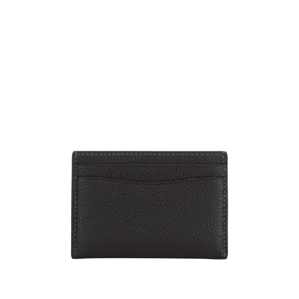 - Four card slots, tonal stitch detailing, gold-tone logo hardware, pebbled leather finish