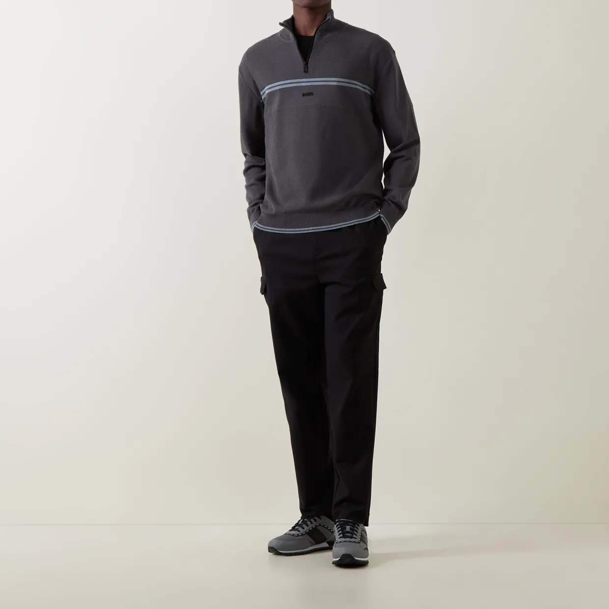 - Half-zip fastening, long sleeves, logo detail, straight hemline