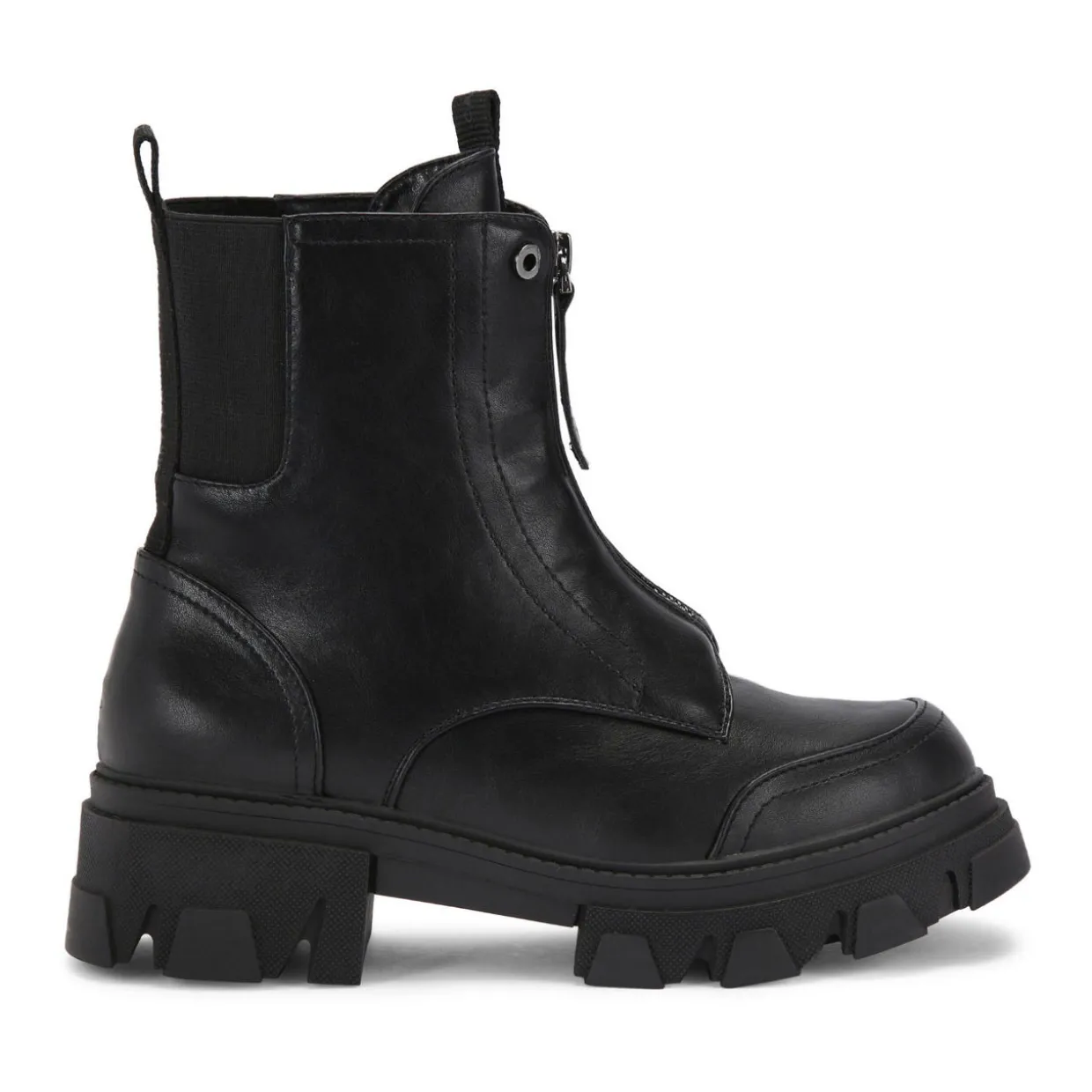 - Statement lace up front, branded woven tabs on the tongue and back of the ankle, silver-tone zip on the inner side of the ankle, round toe, lug sole, ankle length, pull tab