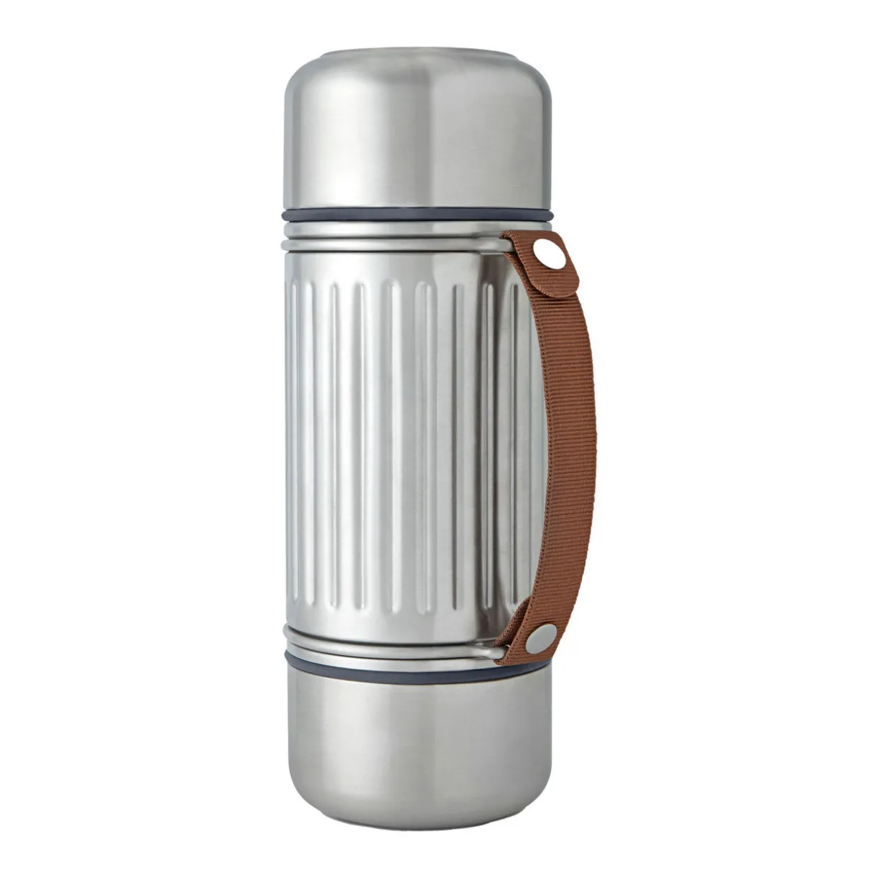 - 100% leak proof, included two double walled stainless steel cups, nylon strap for carrying and pouring, reinforced ribbed construction, dishwasher safe (excl. strap), wide based cups for extra stability, removable seals for easy cleaning