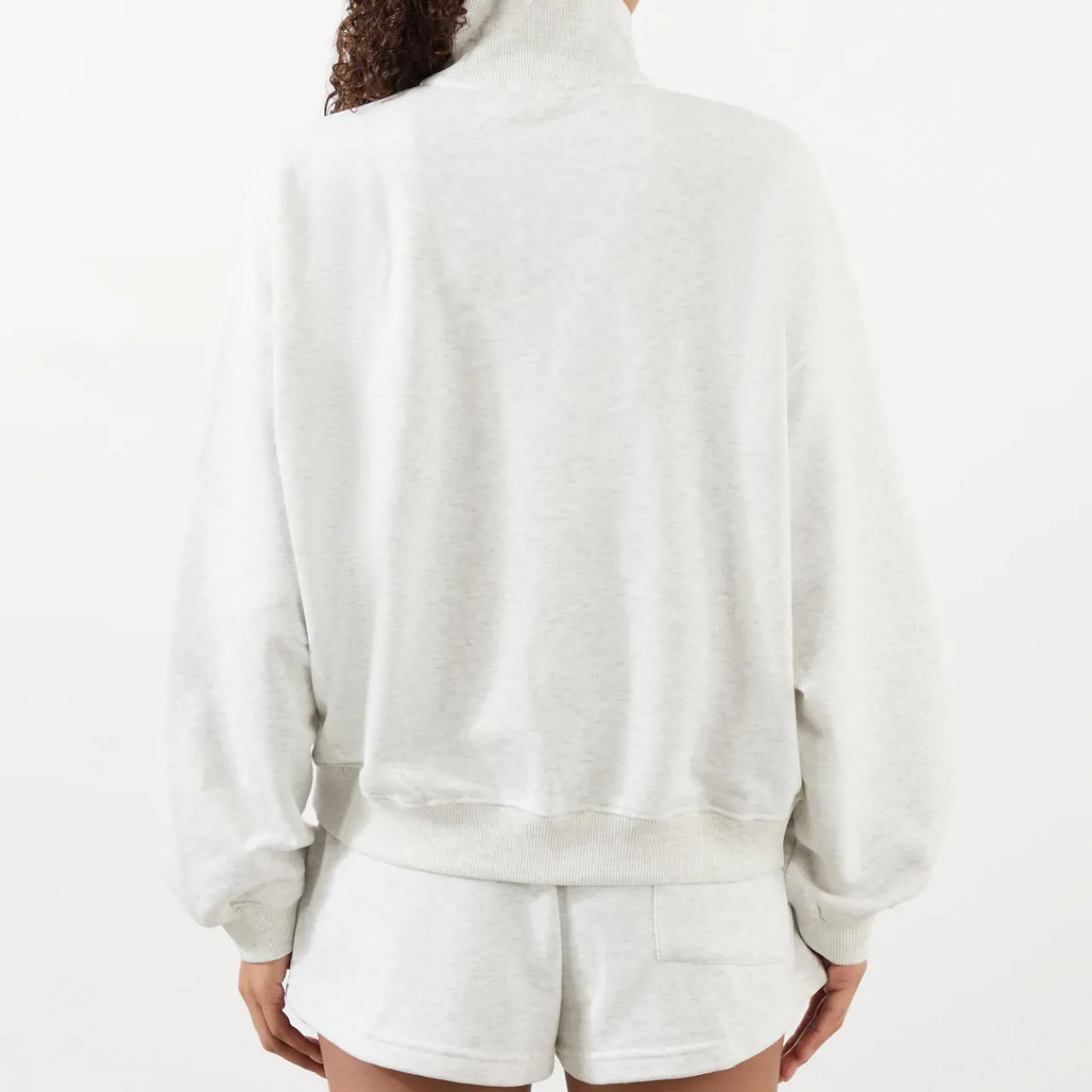 - Stand collar, half zip placket, dropped shoulders, long sleeves, straight hem, ribbed trims, Bold logo detail