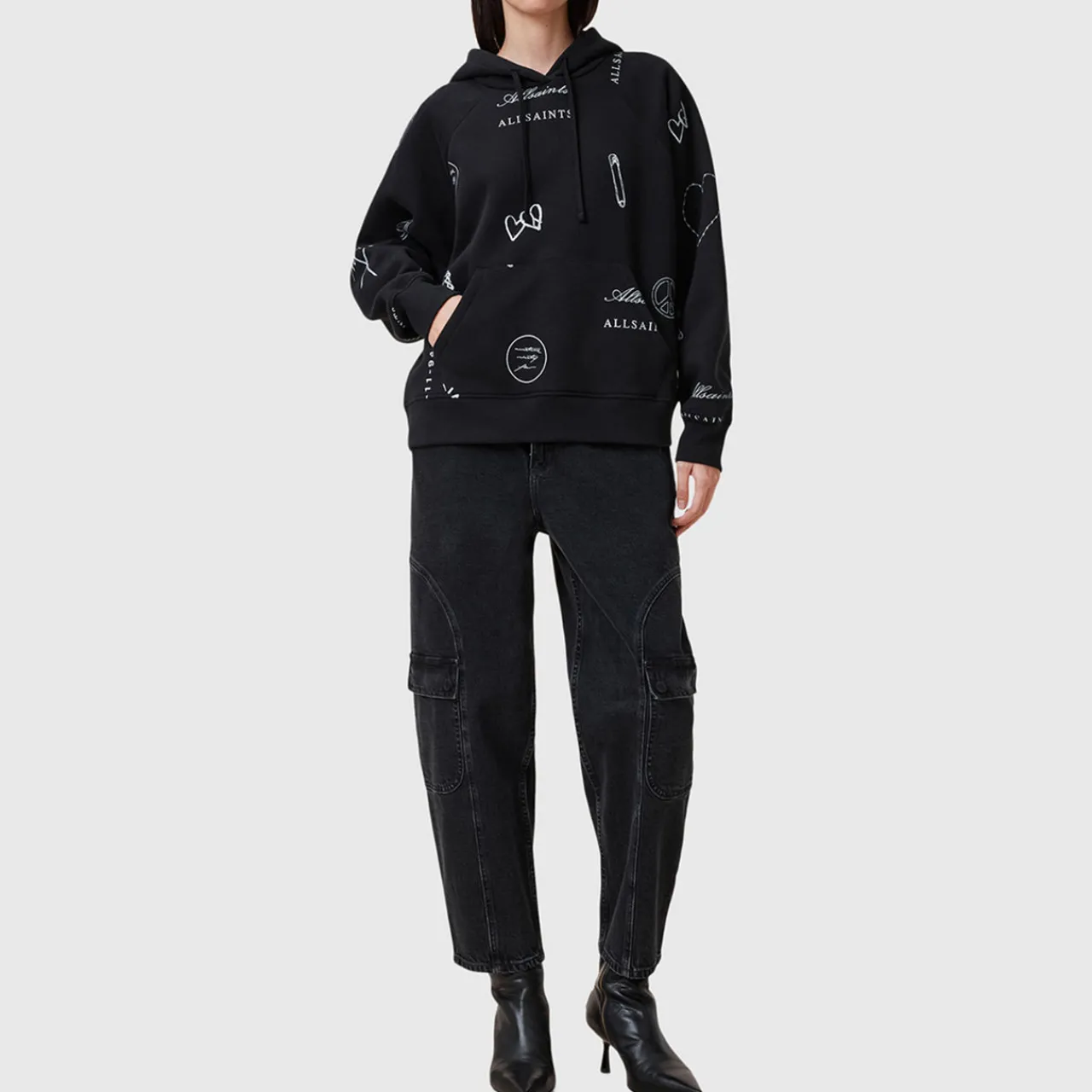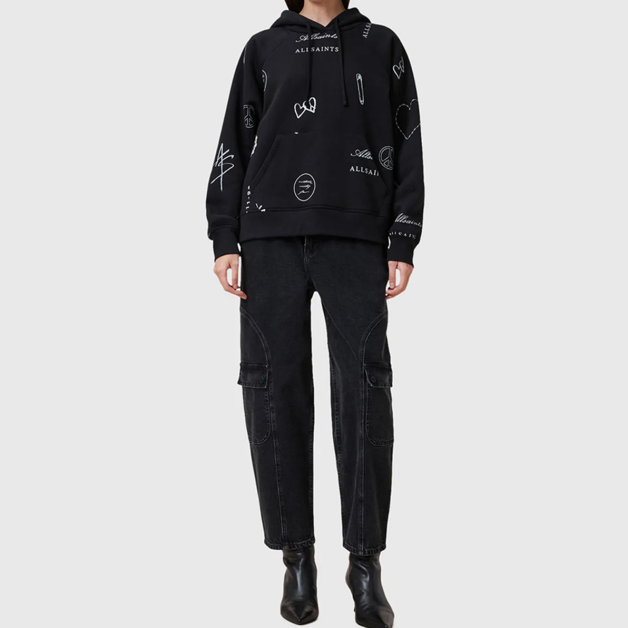 - Graphic print, hooded, drawstrings, front pouch pocket, ribbed cuffs and hem