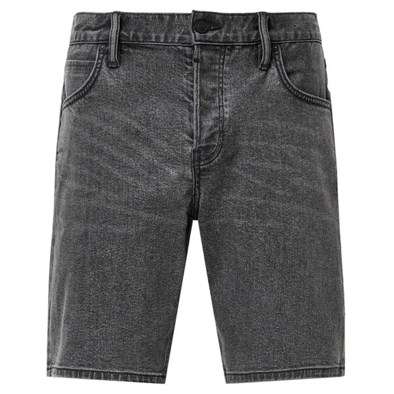 - Printed spell out pocket bag, leather patch, leather back pocket tab branding, metal fly clip, button fastening