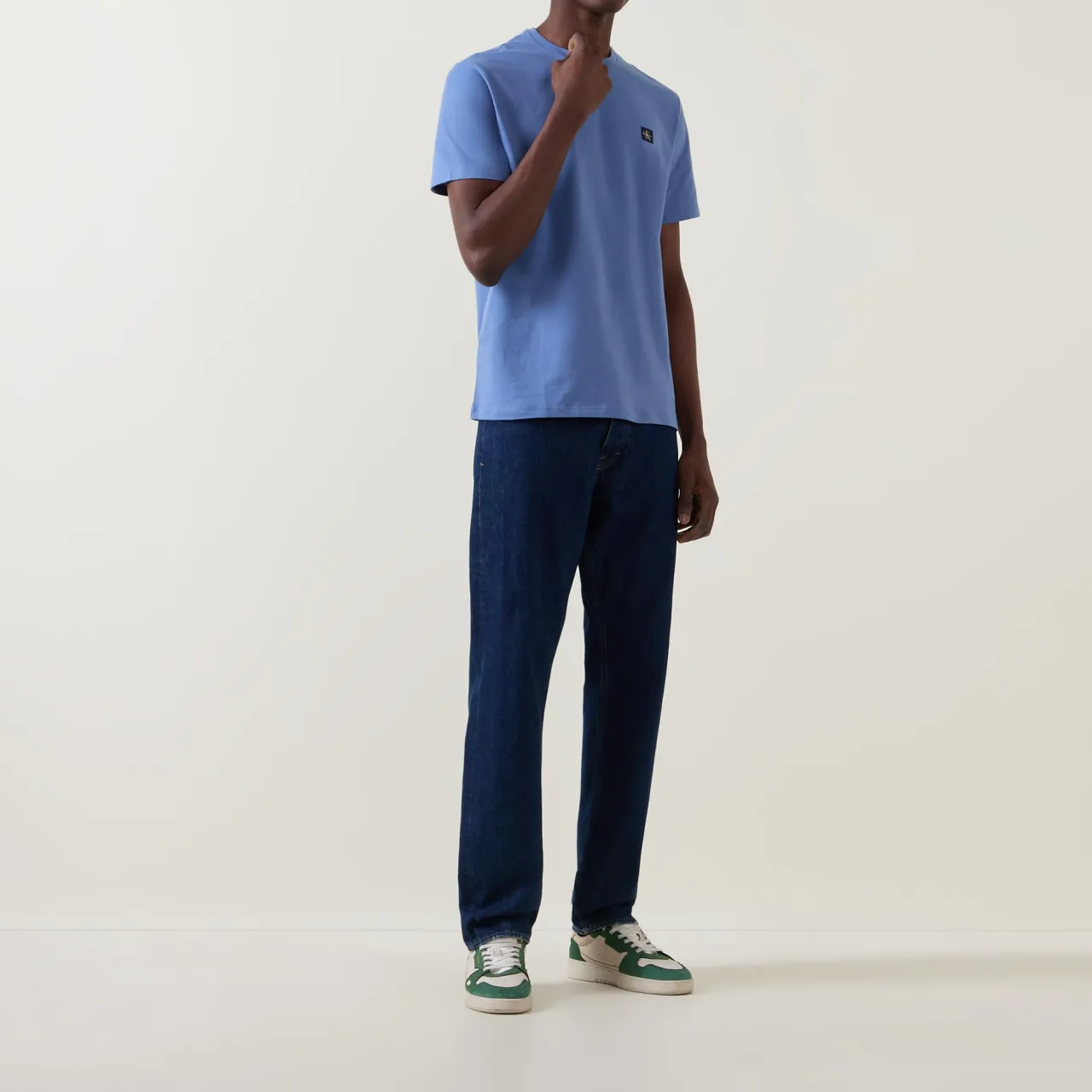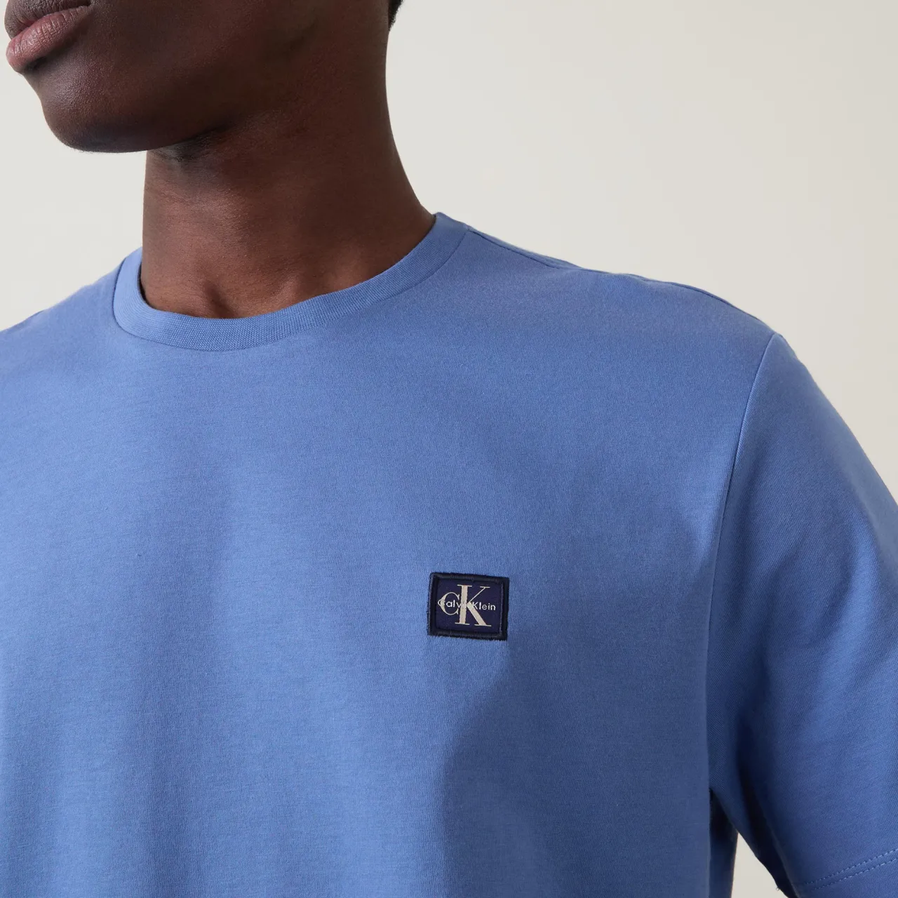 - Round neck, short sleeves, straight hemline, logo badge, straight hemline