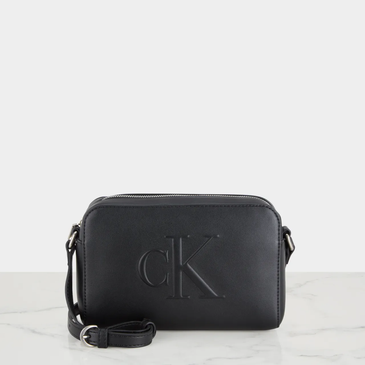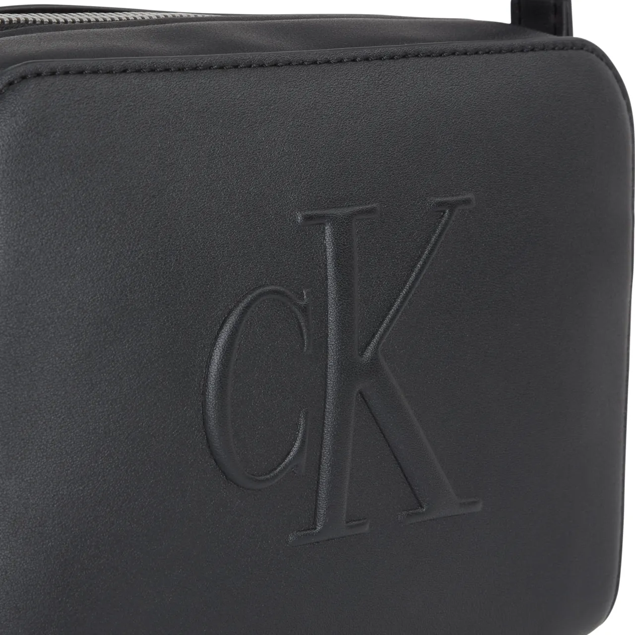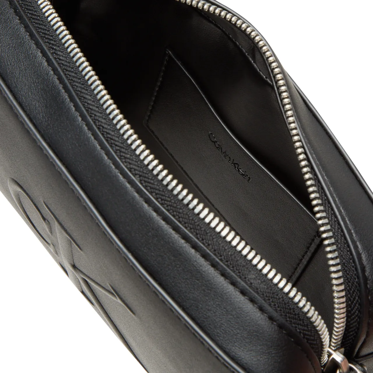- Top zip-around fastening, adjustable crossbody strap, silver-tone hardware, embossed CK logo to the front, tonal stitching, smooth finish