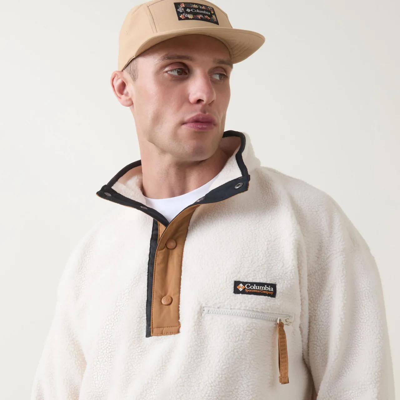 - Fleece design, half-snap button fastenings, funnel neckline, long sleeves, logo detail, chest pocket