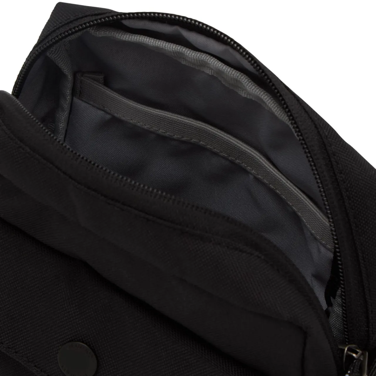 - Adjustable crossbody strap, external security pocket, key clip, zipped main compartment, logo print