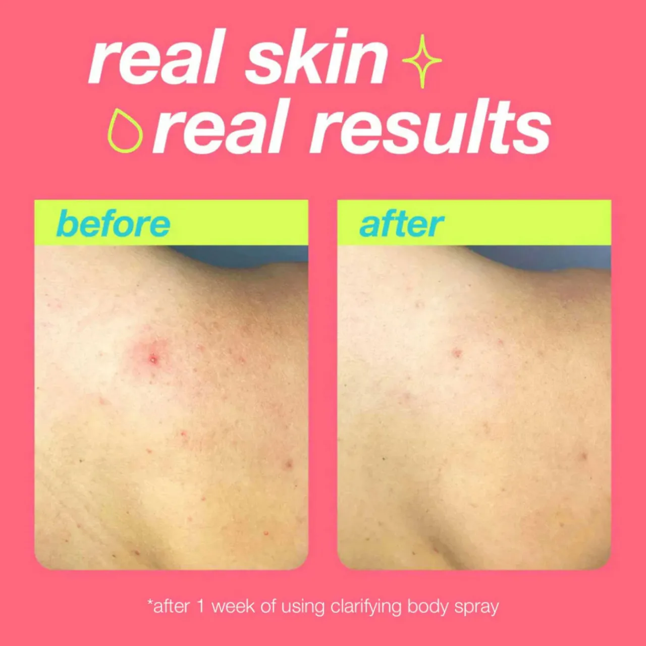 - Key Benefits: Combats active body breakouts and minimises future breakouts. Soothes, cools, and revives the skin with gentle botanicals. Helps balance excess oil and reduce redness.