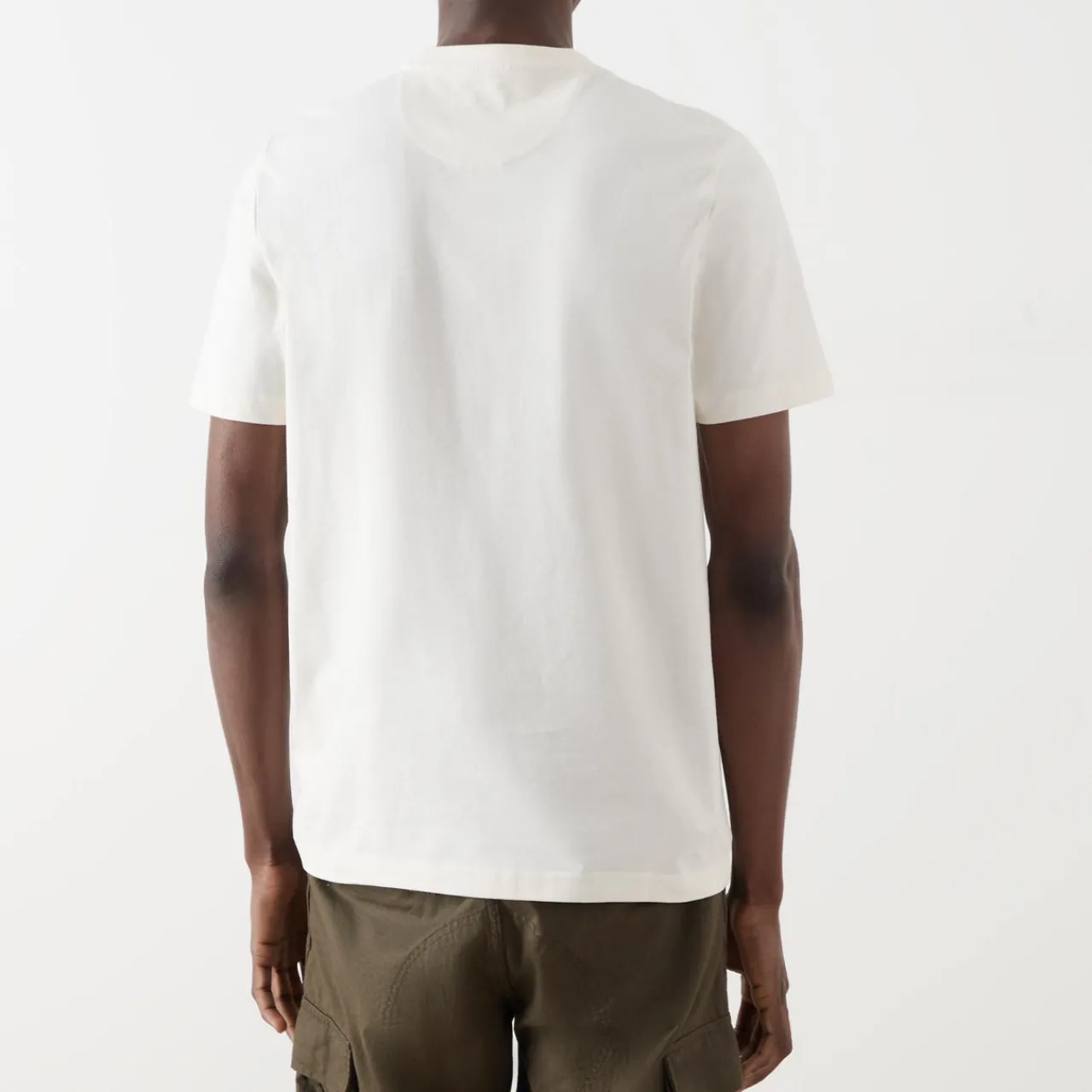 - Round neck, short sleeves, logo detail, straight hemline