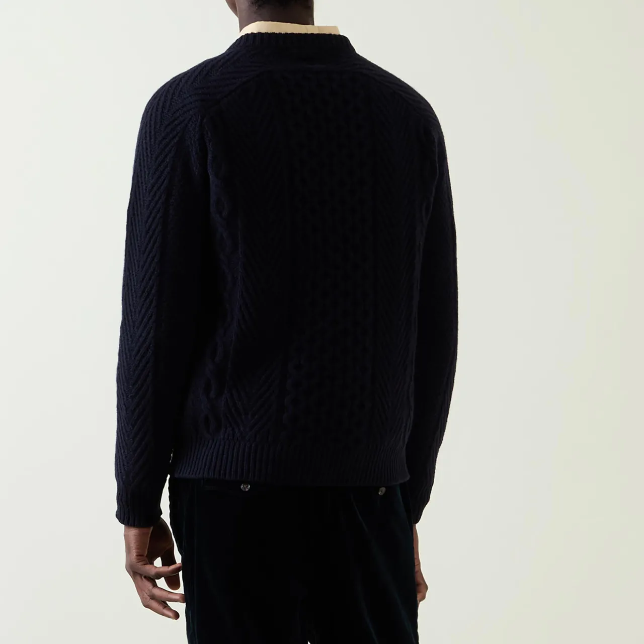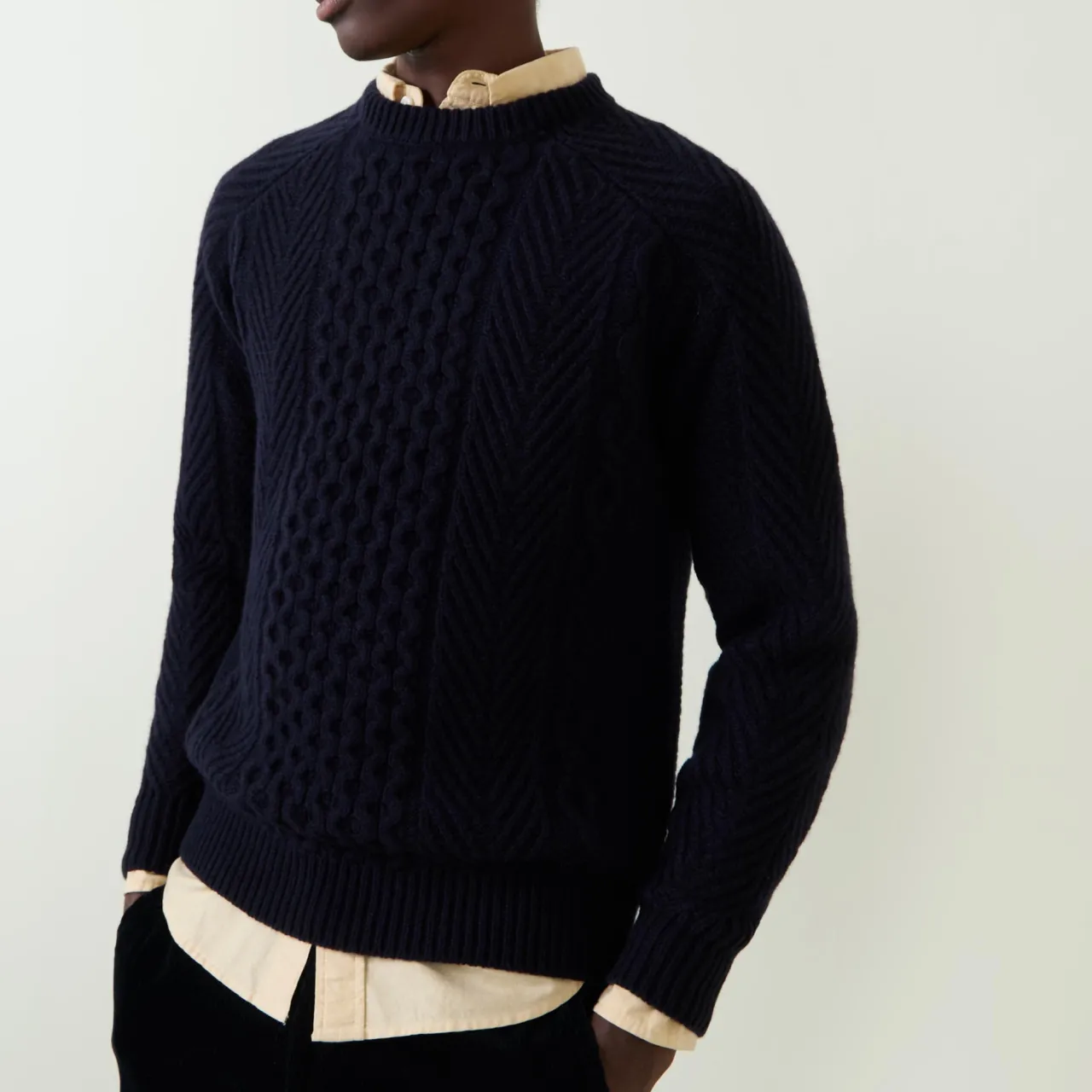 - Crew neck, long sleeves, straight hem, ribbed trims, cable-knit design, soft finish