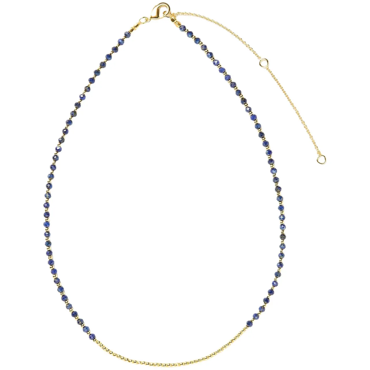 - Part of the Juvi x Michéle McGrath collection, adjustable length, lobster claw clasp, row of shining gold toned beads, vibrant natural gemstone Lapis Lazuli, ideal for layering