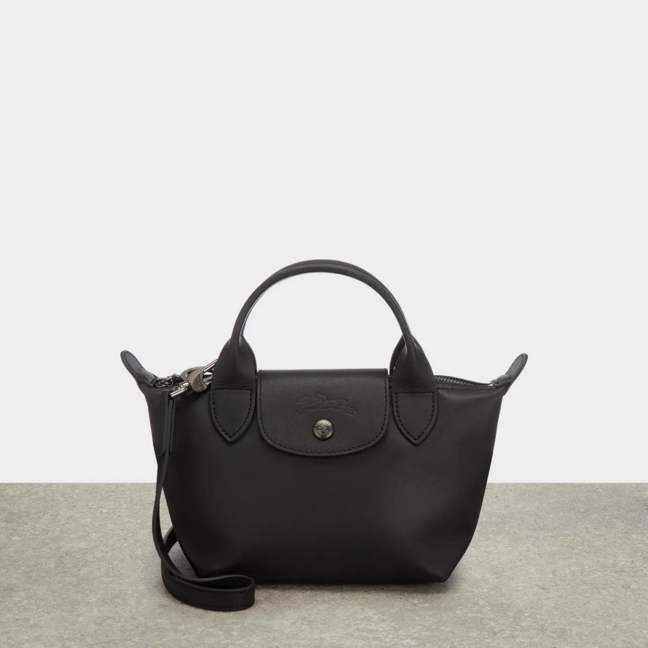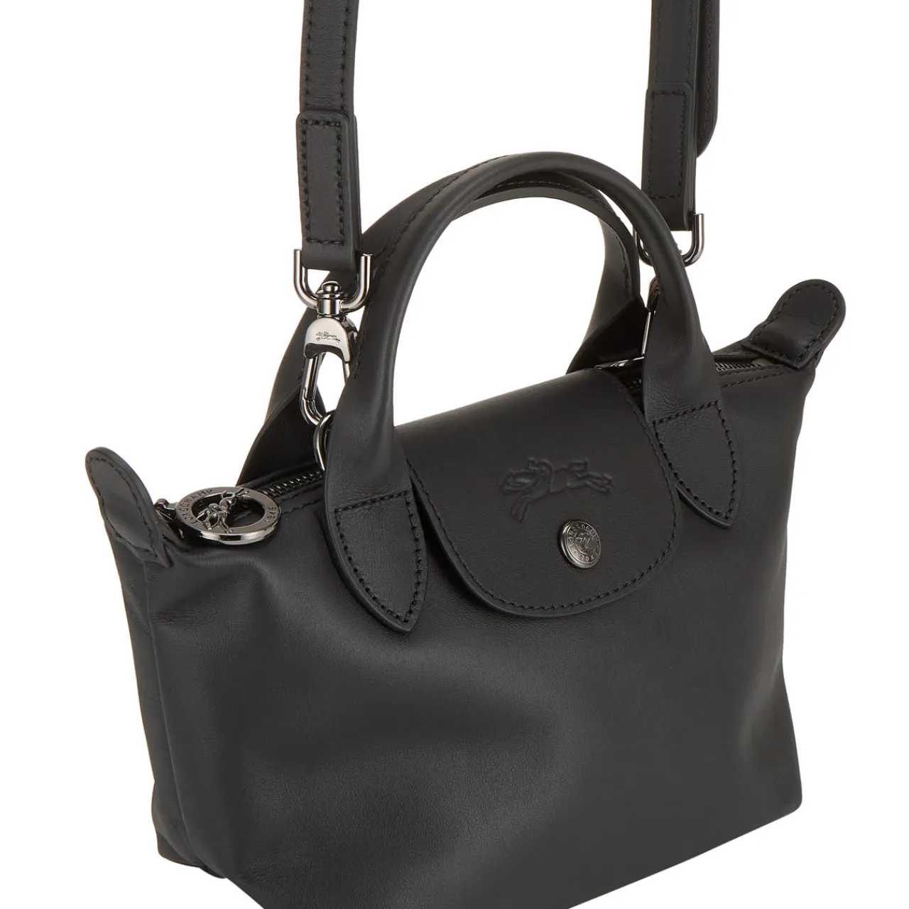 - Two top handles, flap with snap-button closure, top-zip fastening, one main compartment, one interior pocket with zip fastening, one interior flat pocket, detachable and adjustable shoulder strap, gunmetal-tone hardware, logo design, smooth finish