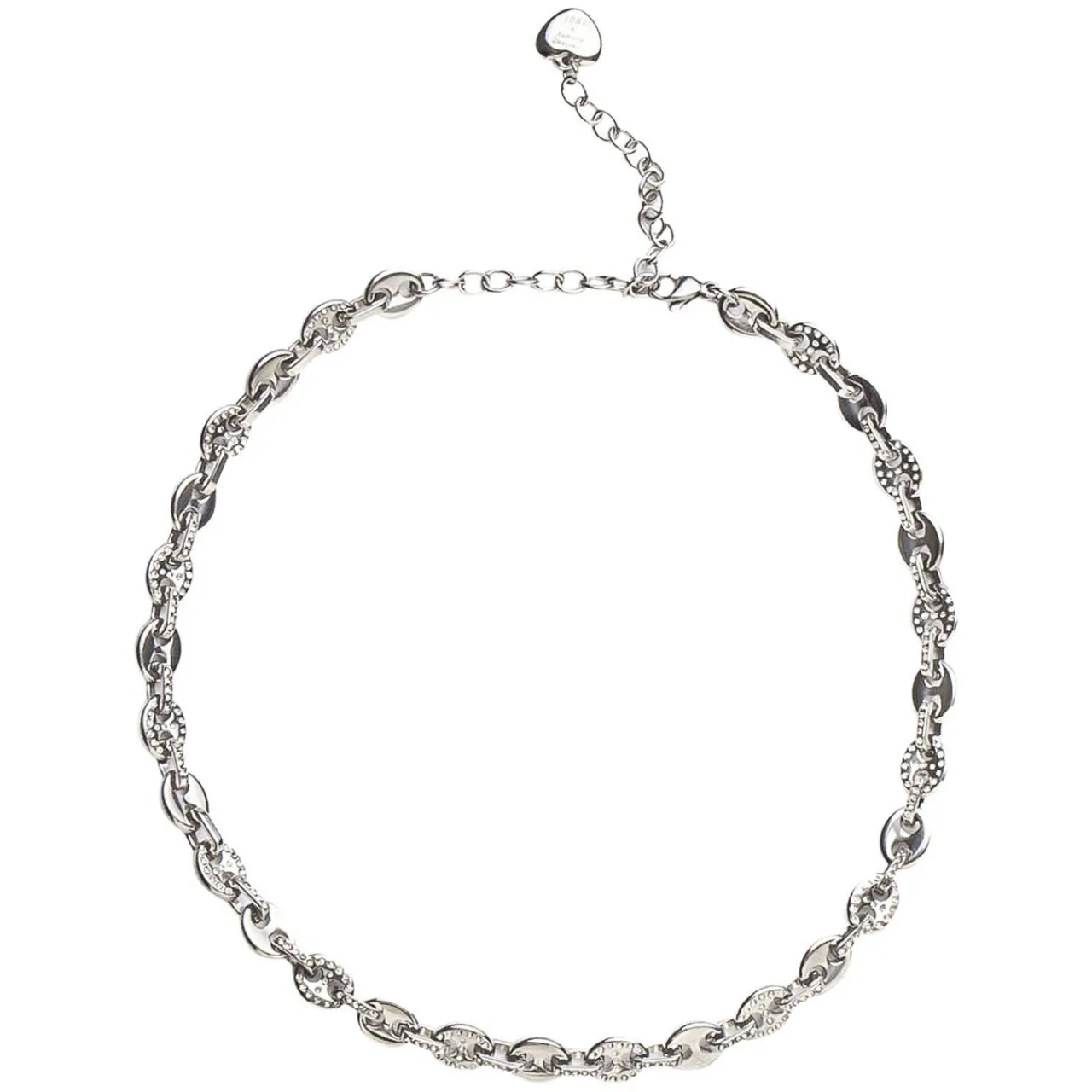 - Choker style necklace, chunky rolo links, stone embellishment, lobster clasp closure, heart-shaped logo plate, tarnish resistant and water resistant, adjustable length, gold-plated, presented in a branded gift box
