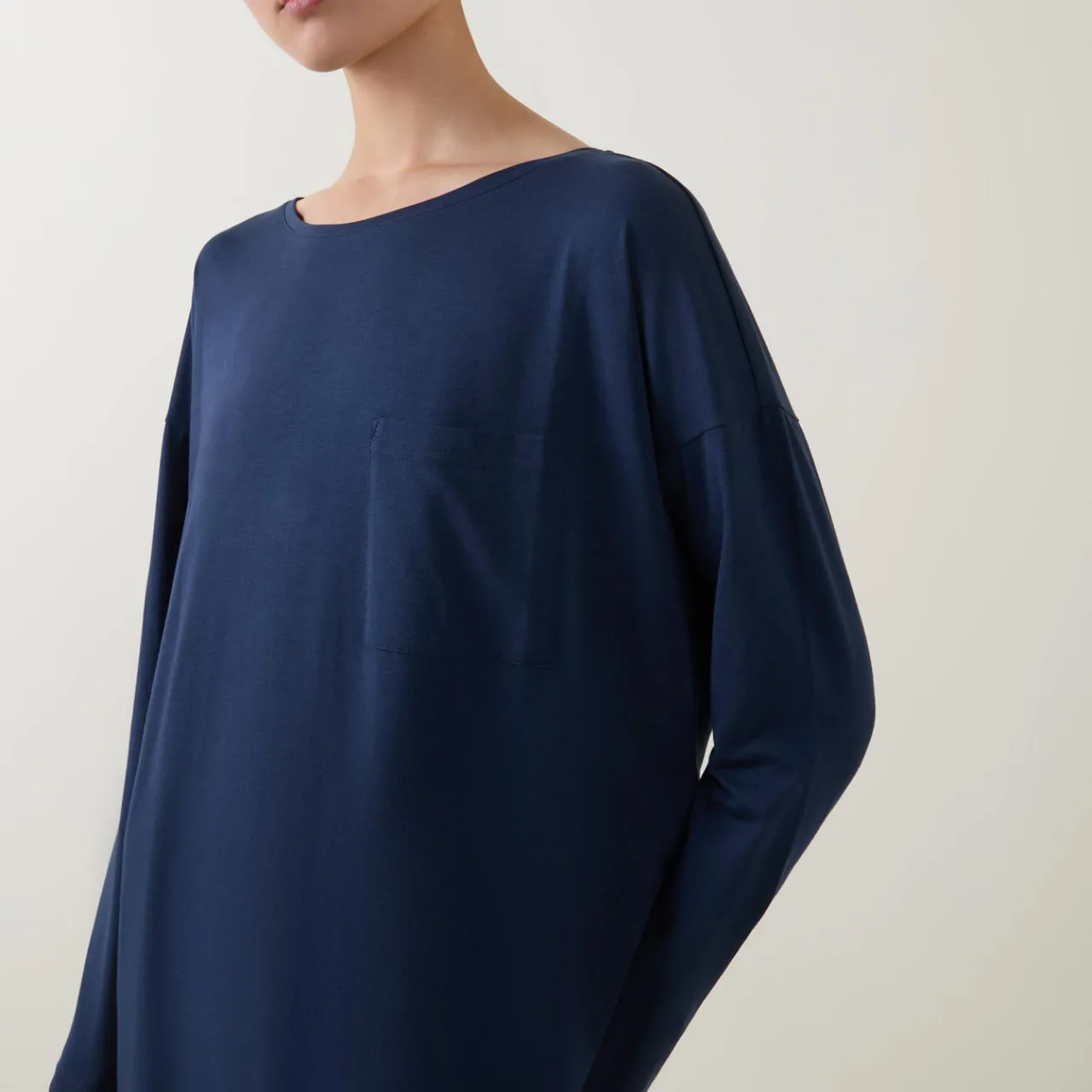 - Round neckline, long sleeves, solid style