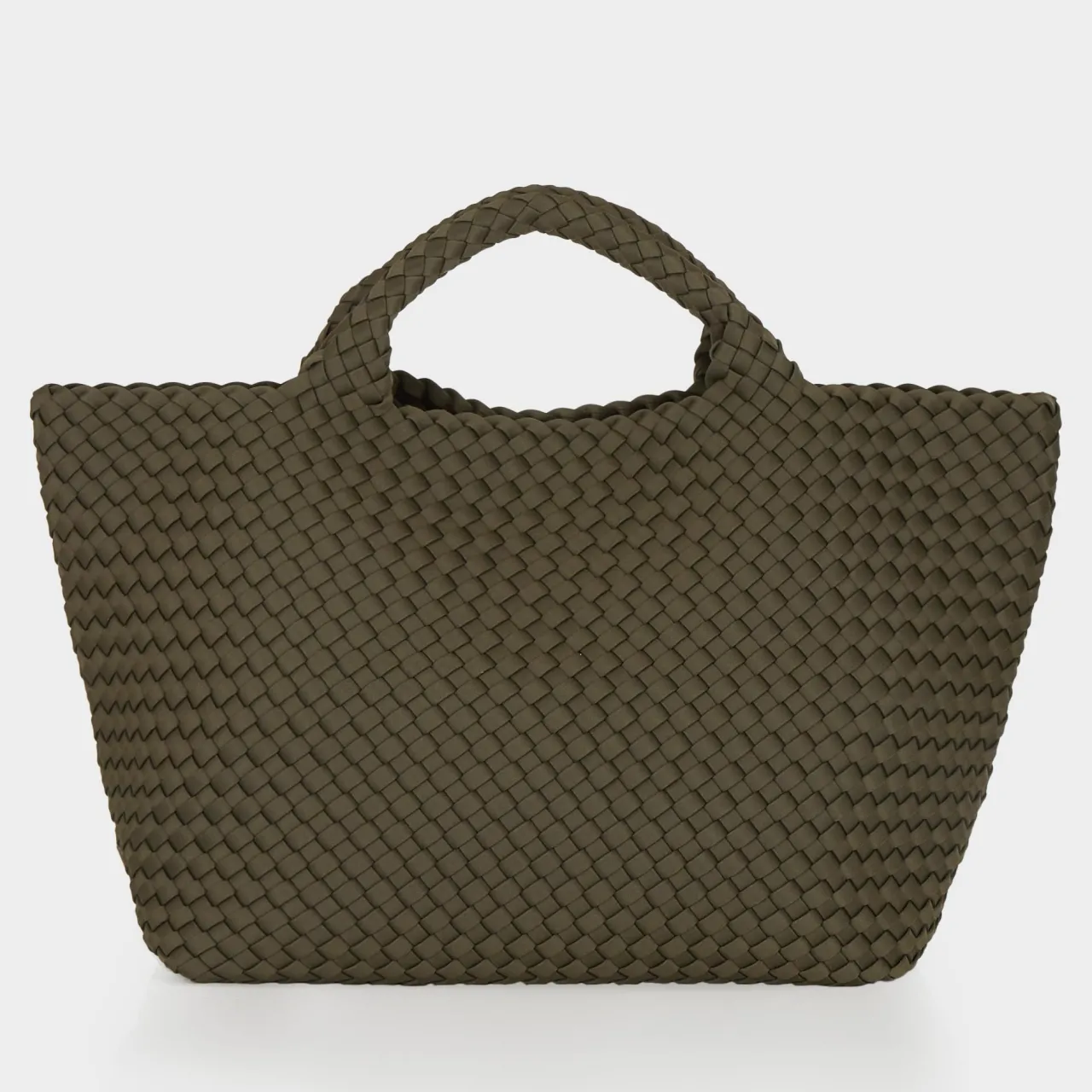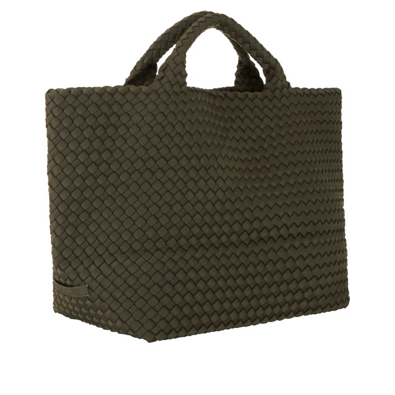 - Handwoven, two top handles, open top design, side logo badge
