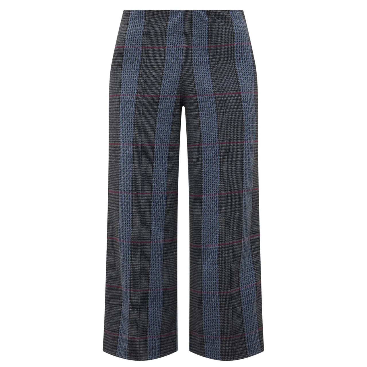 - Mid-rise, wide leg, cropped length, pull-on style, clean hems, tonal check print pattern