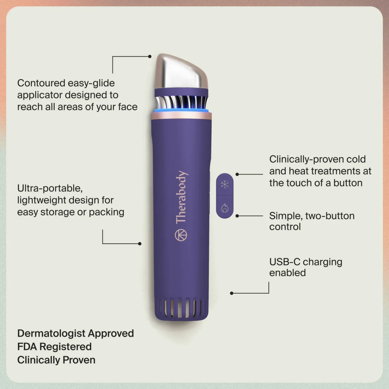 Peace out, puffiness. Say hello to your new skincare hero, the first-of-its-kind TheraFace Depuffing Wand that features cold and heat facial treatments in one portable device, for use at home and on the go.