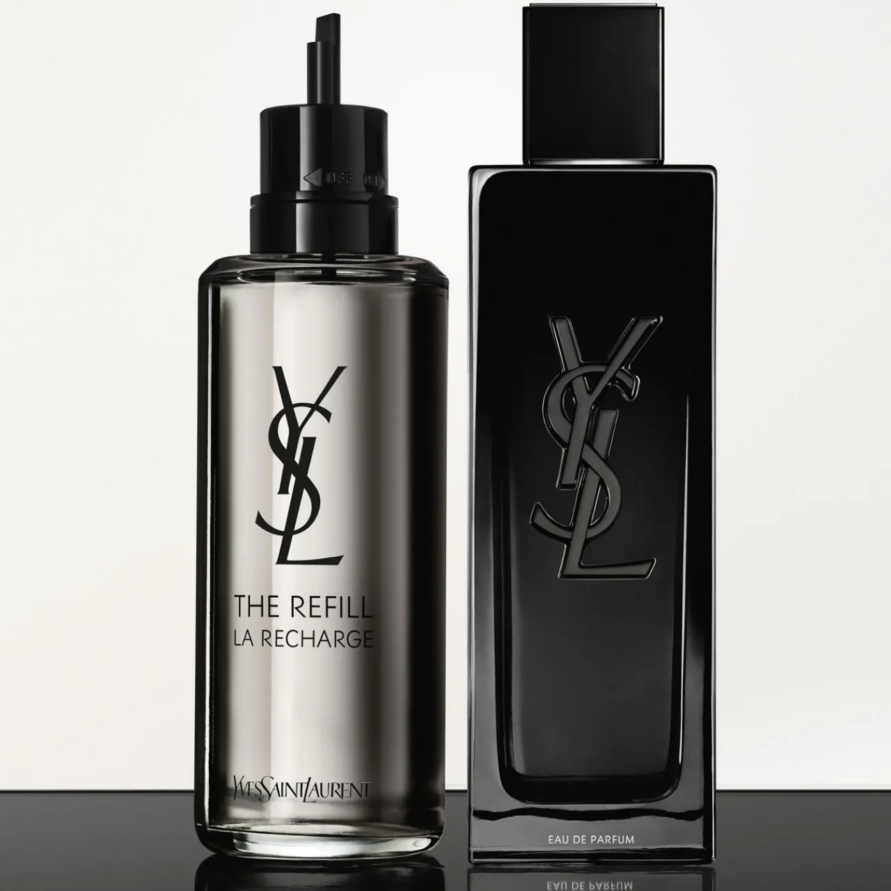 - YSL Myslf is refillable! YSL Beauty is committed to reducing its impact on the environment. All formats of MYSLF are refillable, with the additional purchase of a 150ml perfume refill, reducing the amount of packaging materials used to replenish your masculine fragrance.