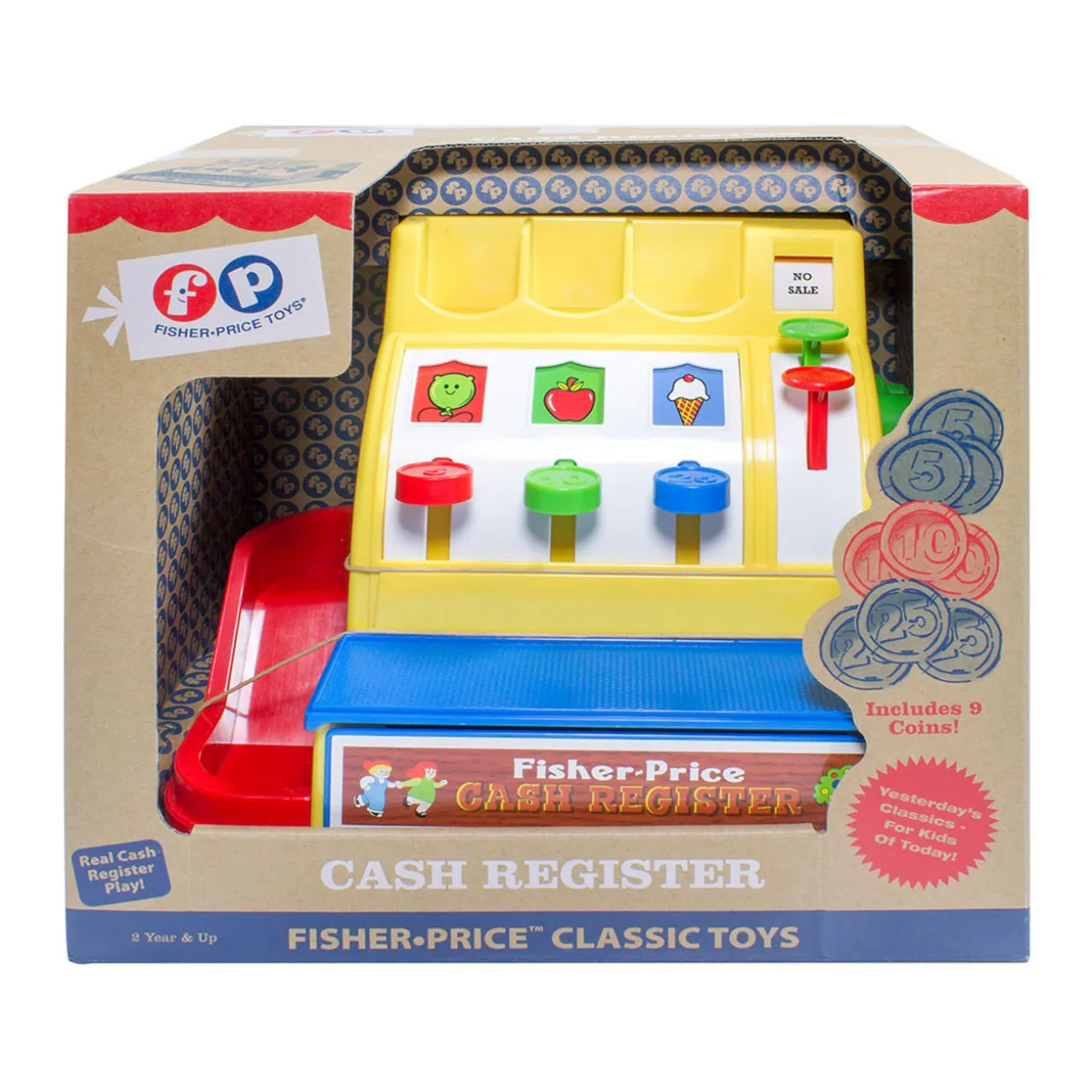 - Toy cash register, includes plastic coins.