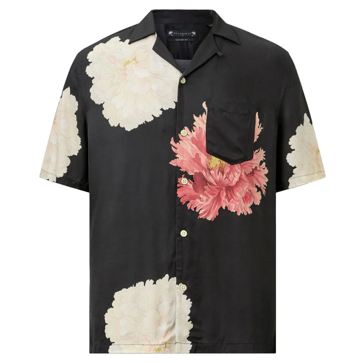 - Floral print, button fastening, one patch chest pocket, revere collar, straight hem