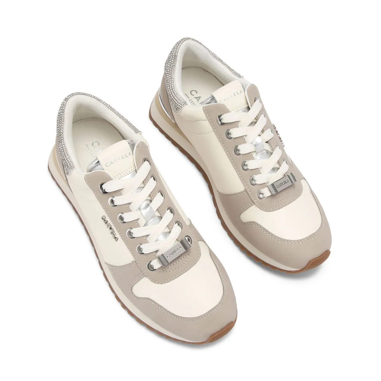 - Panelled design, embellished detailing, lace up fastening, silver-tone eyelets, branded tab detail