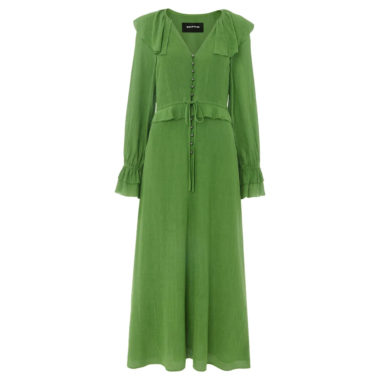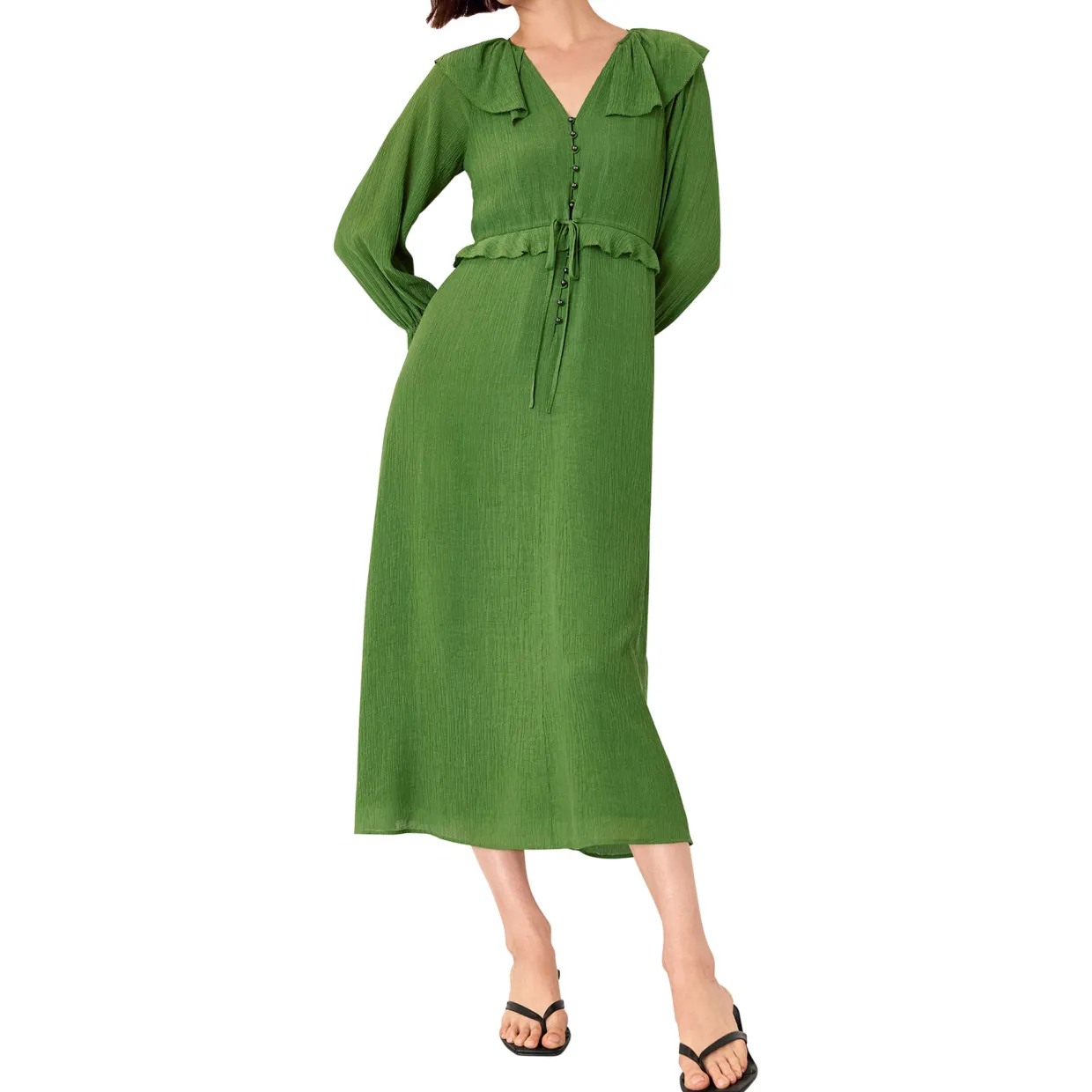 - Frill details, V-neckline, button fastening, drawstrings, long sleeves