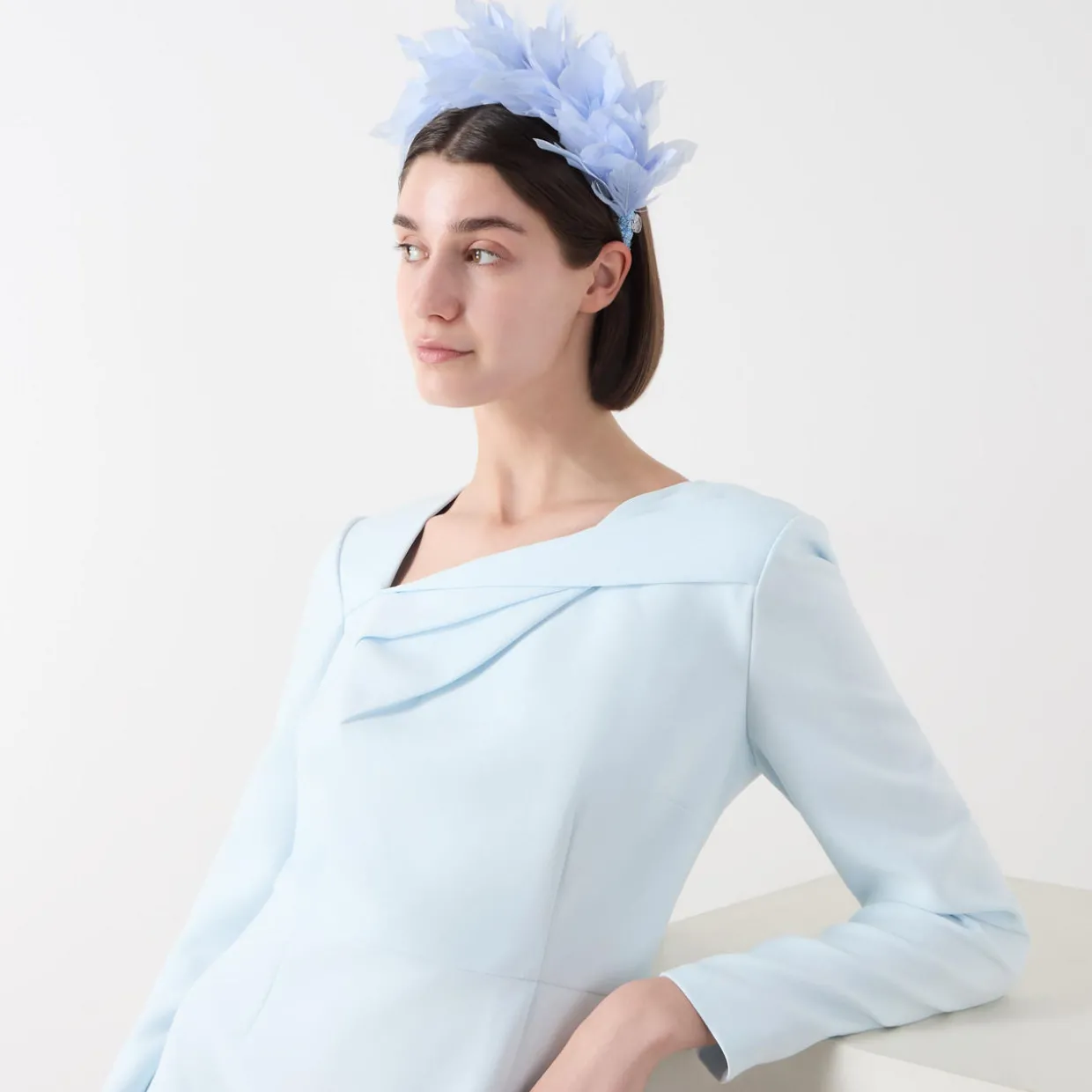- Woven headband, slip-on style, feather-style embellishment