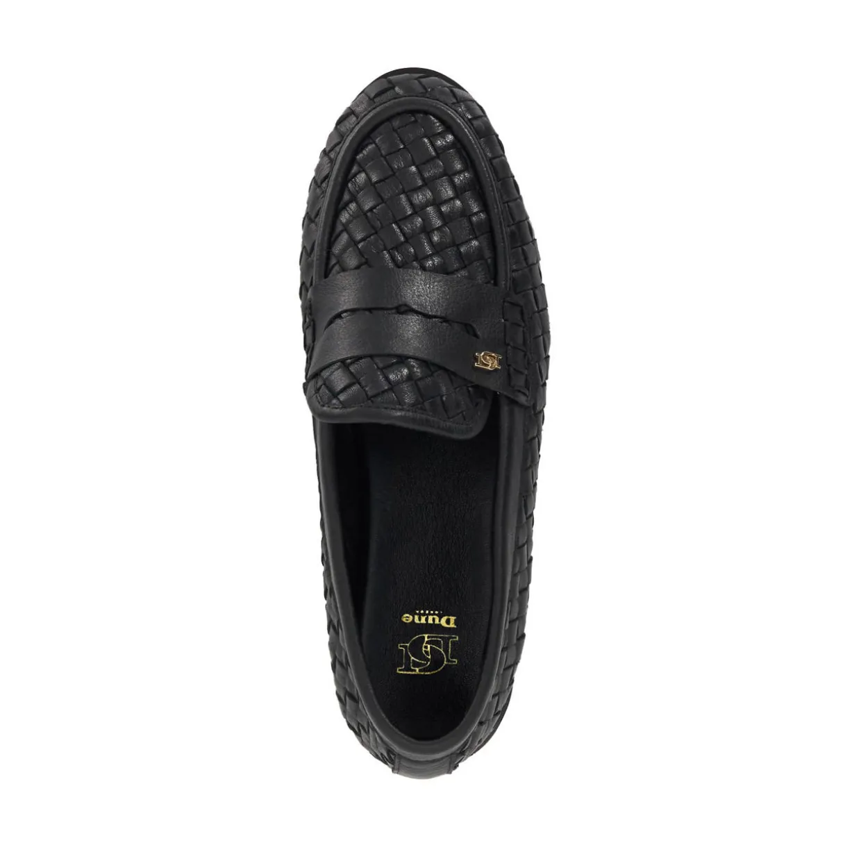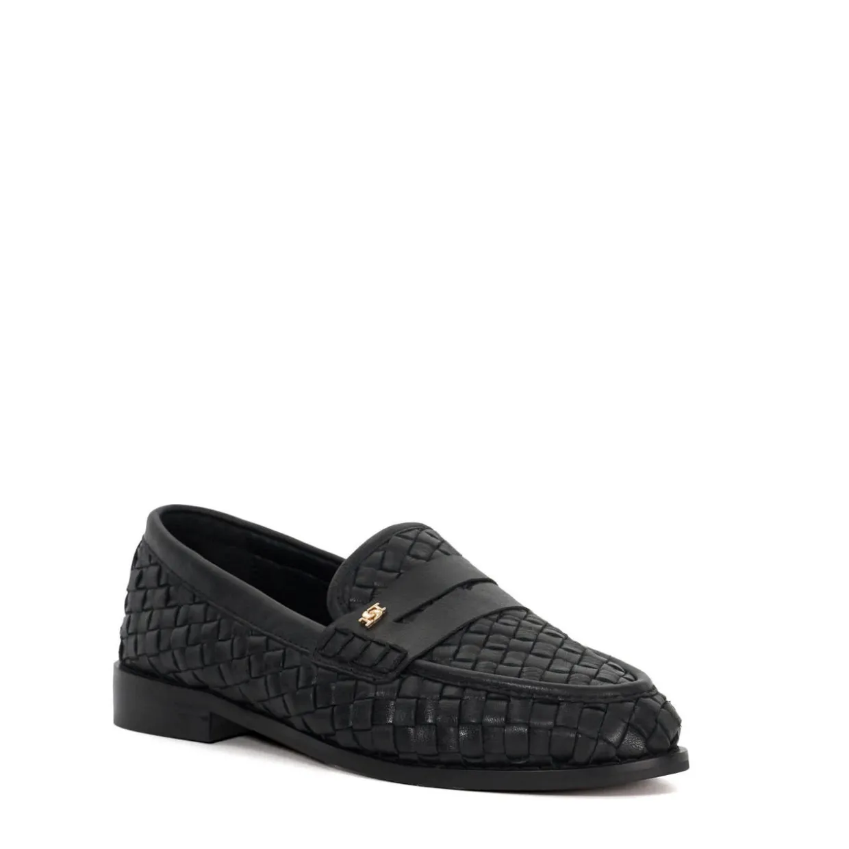 - Signature weave, woven leather, penny loafer style, low stacked heel, ‘DD’ pin, round toe