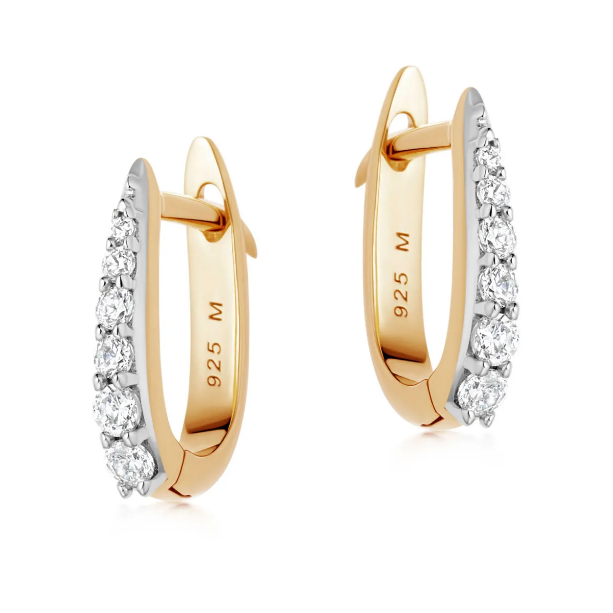 - 18 carat gold vermeil on sterling silver, Cubic Zirconia stone detail, huggie style, claw fastening.