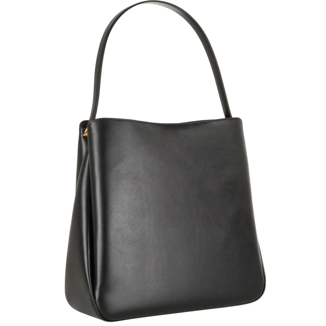 - Fixed shoulder strap, secure magnetic fastening, bucket shape, tonal stitching, logo branding, smooth leather finish