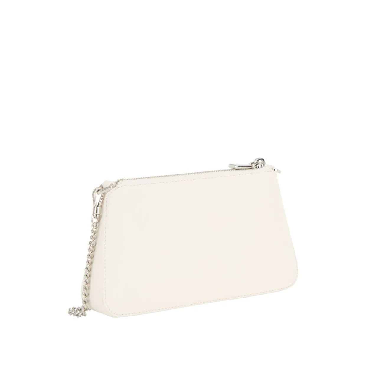 - Top zip fastening, detachable chain strap, silver-tone hardware, logo details, smooth leather finish