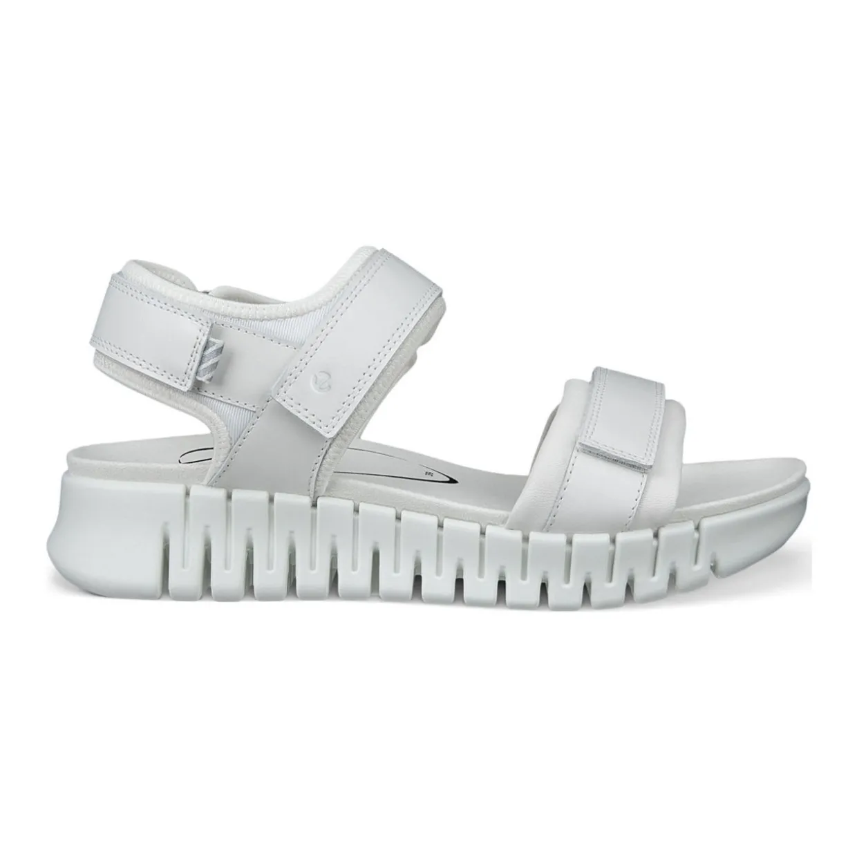 - Ecco leather, triple strap design, secure fit, easy adjustability, reflective detailing, comfortable microfibre-covered footbed, soft ultralight PHORENE™ sole, Ecco FLUIDFORM™ Technology