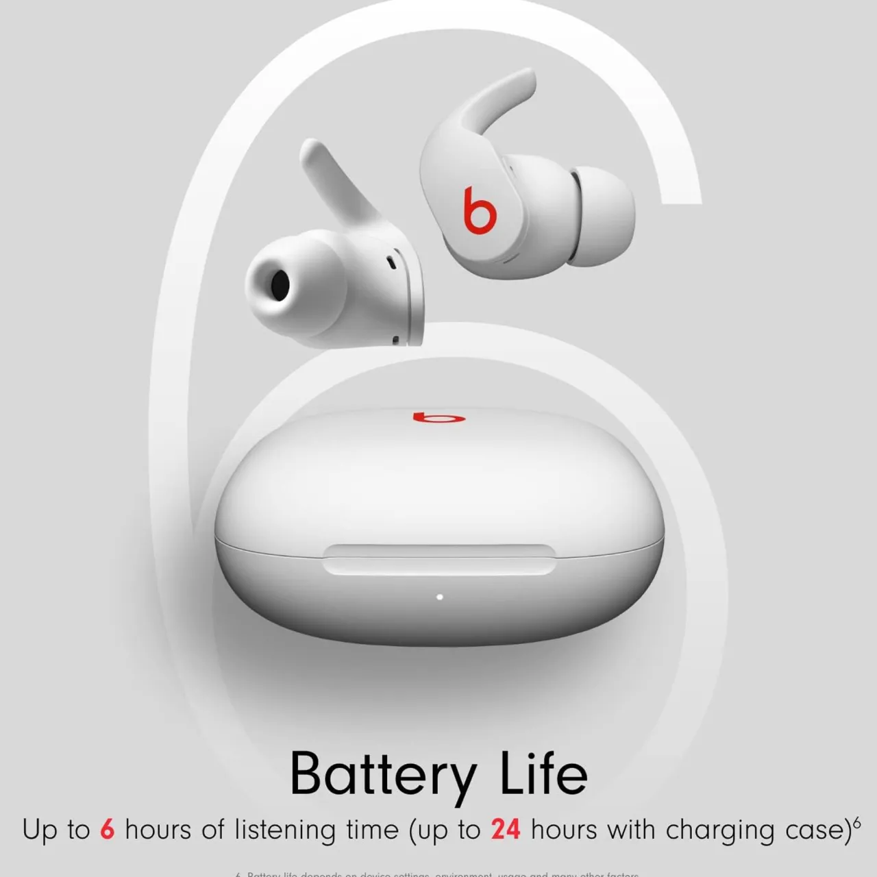 - Up to 6 hours of listening time (up to 24 hours combined with pocket-sized charging case)