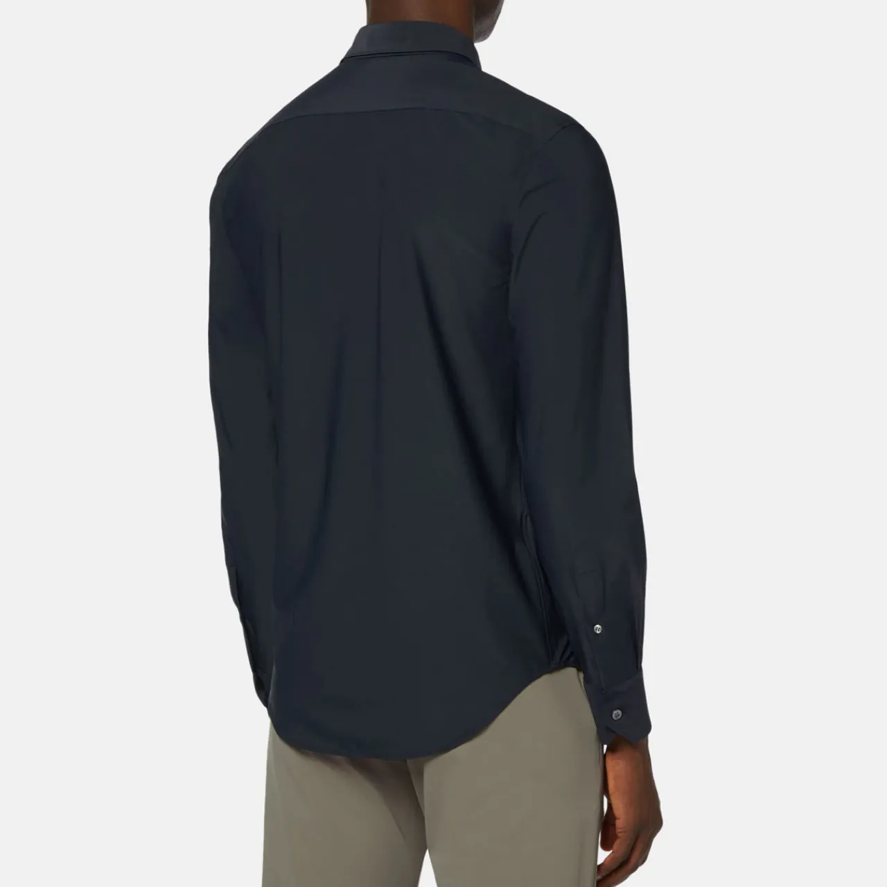 - High breathability, thermoregulation, easy maintenance, quick drying, slim fit, long sleeves, button fastenings, curved hemline