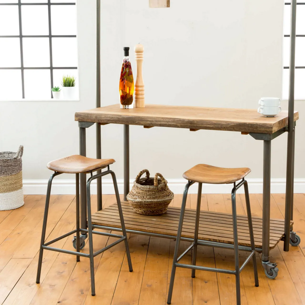 This wood and metal lab stool is a unique piece bursting with character and charm. This durable choice delivers a rustic and retro look to any space.