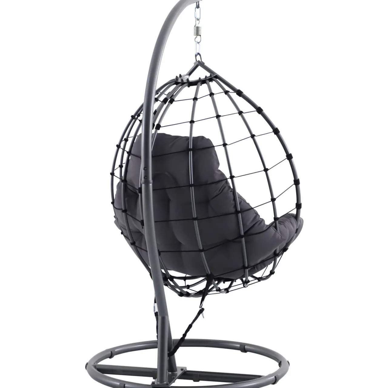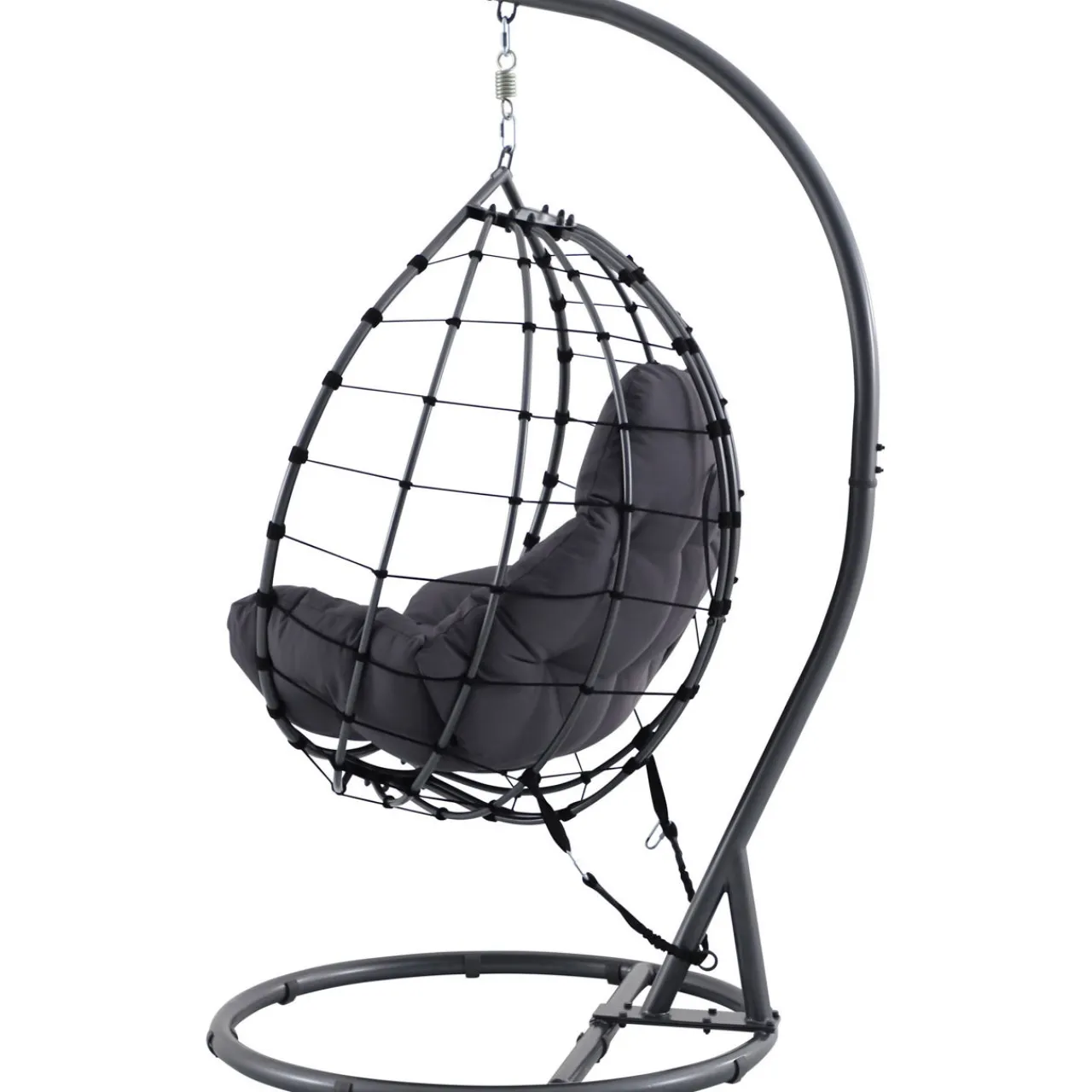 Enjoy ultimate comfort and support with the Shelton Hanging Chair. Sink into the plush cushions and unwind as the chair gently sways you.This chair is perfect for smaller spaces, patios, or an outdoor corner. The season-proof cushions and aluminium frame ensure long-lasting style, no matter the weather.