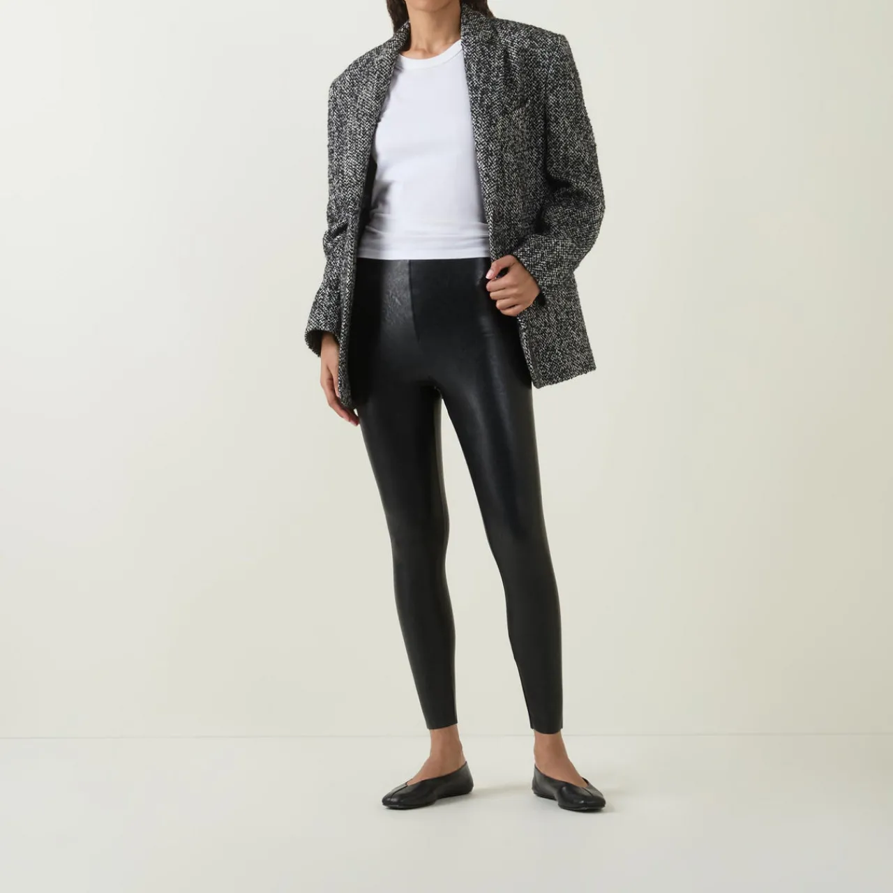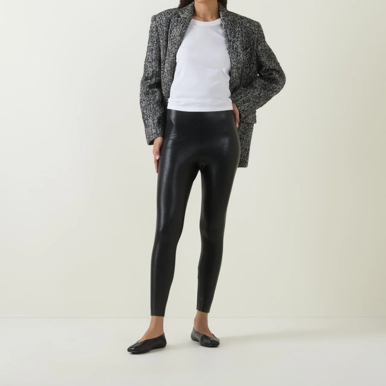 - Flattering high-rise, signature internal waistband, slightly cropped length, raw-cut hems, smoothing properties, four-way stretch, high recovery, firming fabric with light compression