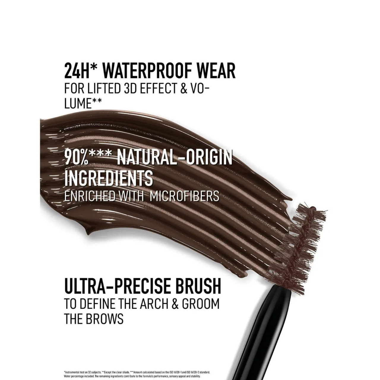 Formulated with 90%natural-origin ingredients, Diorshow brow mascara is available for the first time in a neutral and universal clear shade. Diorshow On Set Brow creates volumeand sets brows for 24 hours.