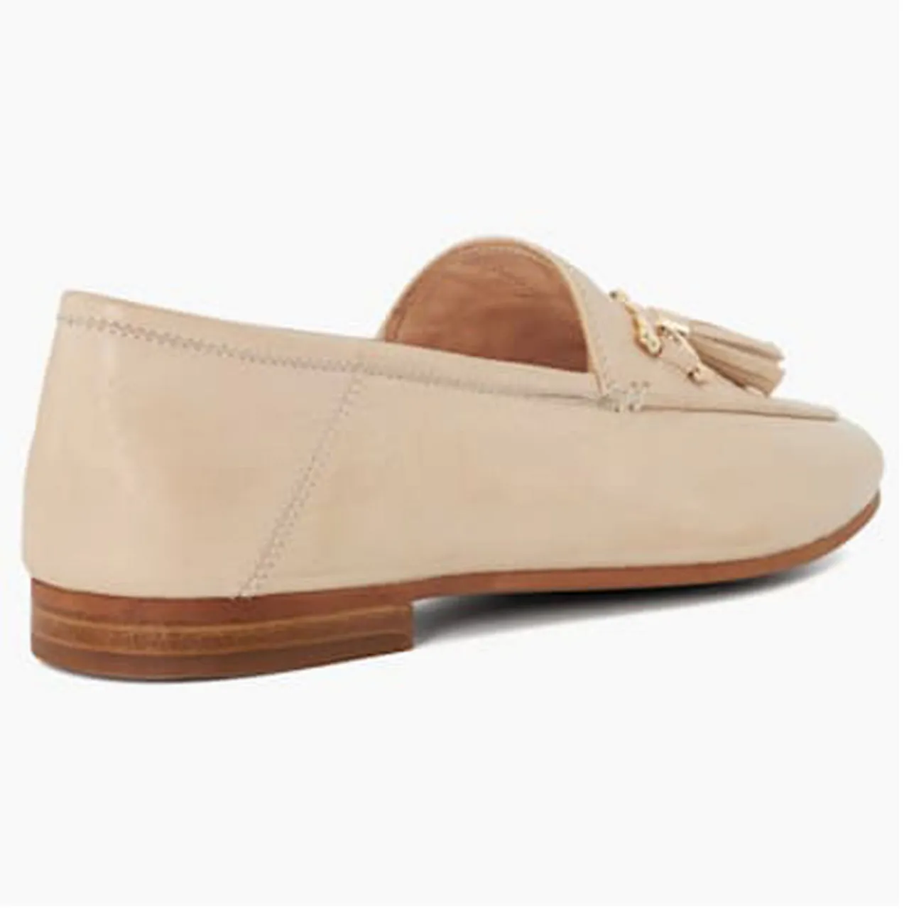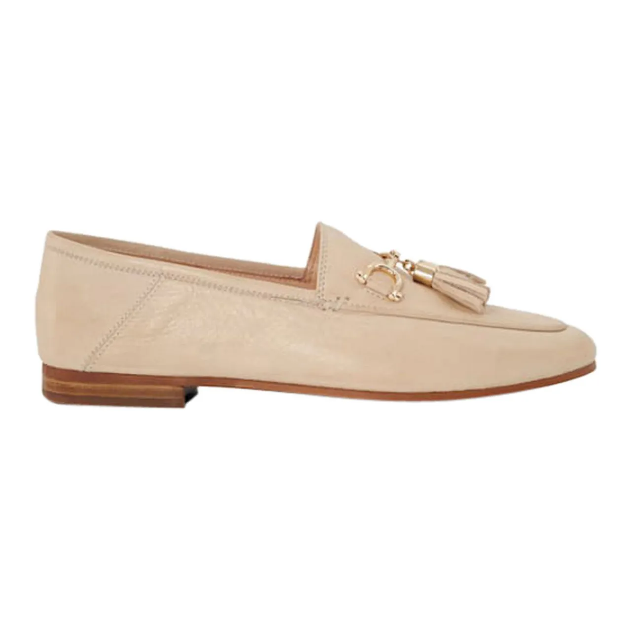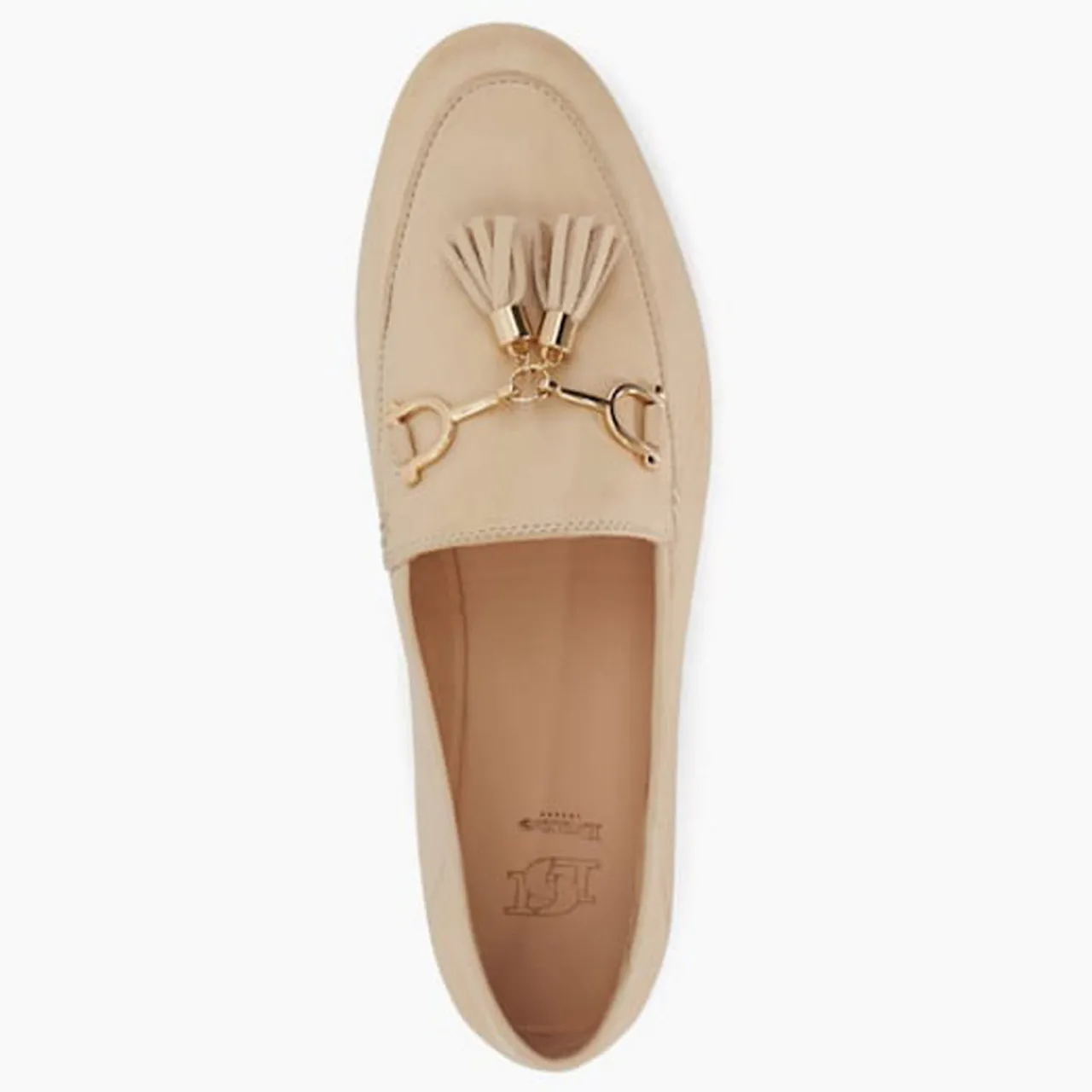 - Almond-shape toe, low block heel, gold-tone snaffle detailing, tassel trim, grained finish