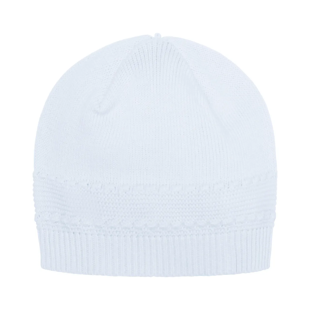 - Bodysuit: Textured knit, contrast collar, pearlised buttons, ribbed trims. Hat: Textured knit, pull-on style, ribbed trim