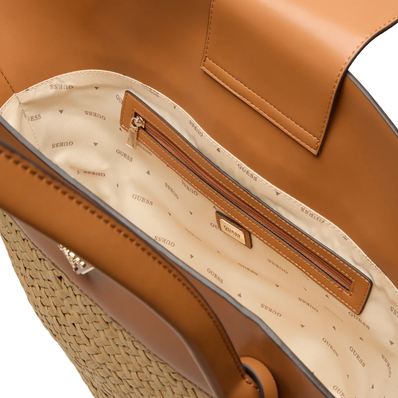- Interior: One main compartment, inner zip-fastening pocket, logo plaque, fully lined
