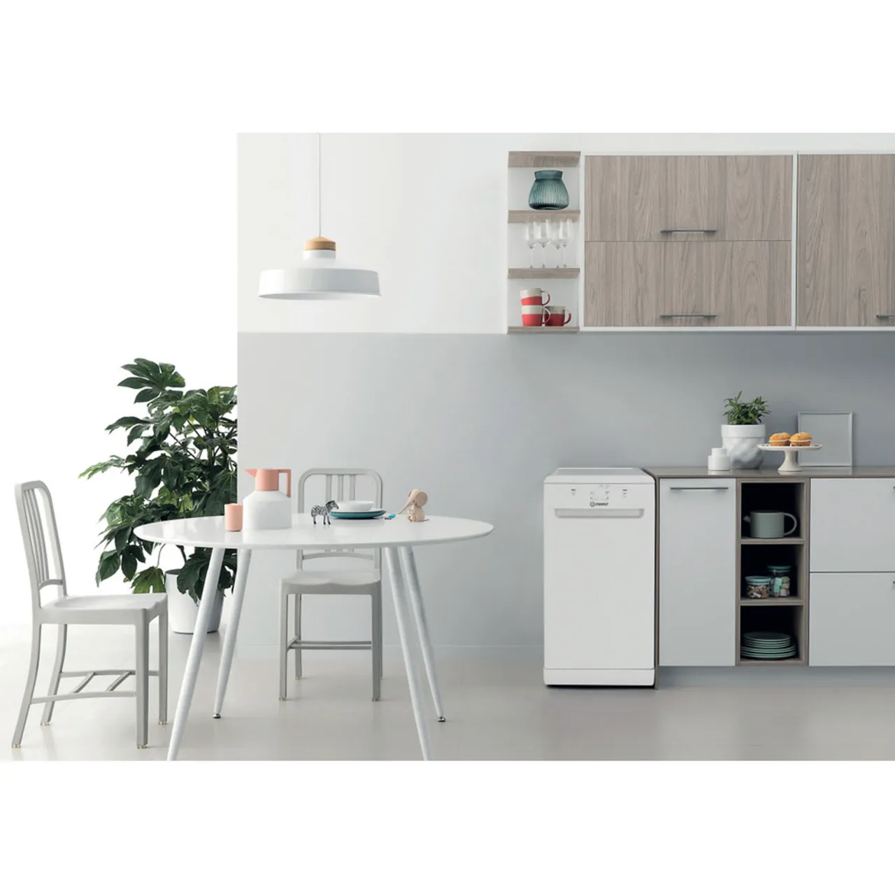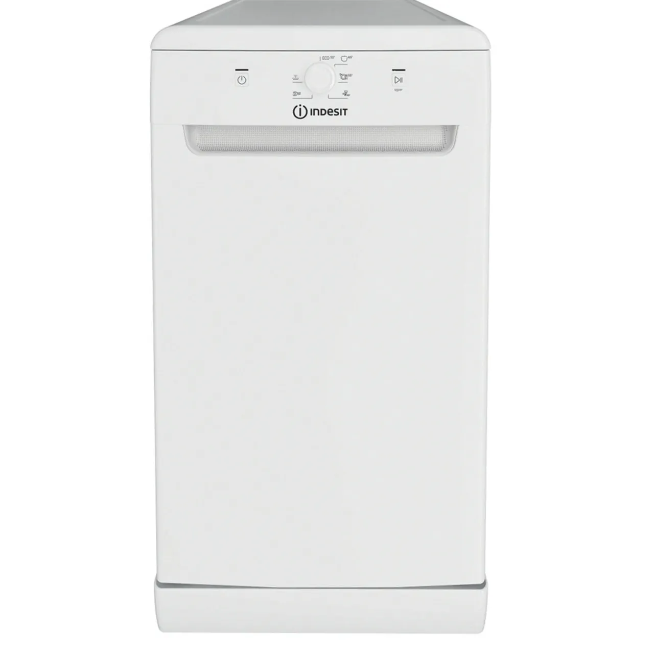 This Indesit Dishwasher features: 45cm width with an outstanding number of place settings, combined with a small and compact size, so you can enjoy all the space you need, both inside and outside your appliance. Low water consumption combined with space-efficient, compact design. White colour. Adjustable feet, for perfect stability on uneven floors and surfaces.