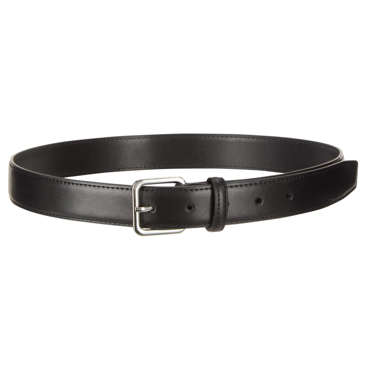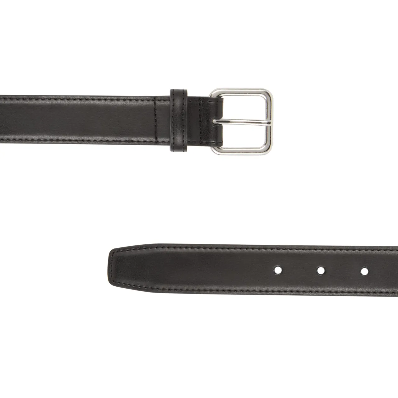 - Slim silhouette, squared tip, silver-tone hardware, smooth finish, adjustable fit, square buckle fastening, belt loop keeper