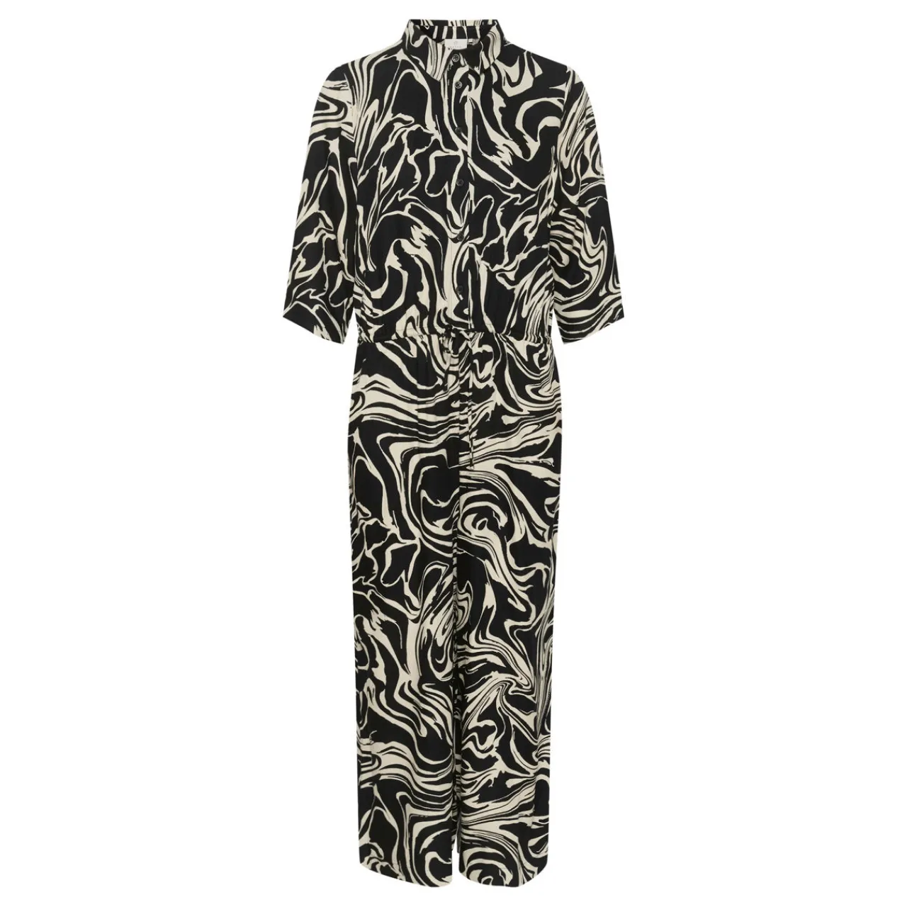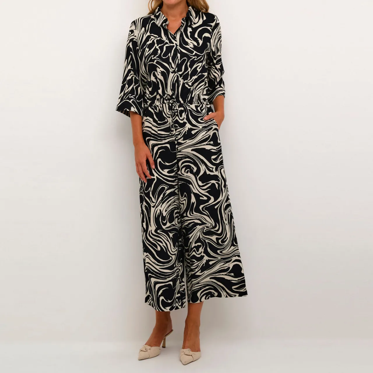 - Collared neckline, half-button fastening, ballet-length sleeves, drawstring adjustable waist, side entry pockets, printed
