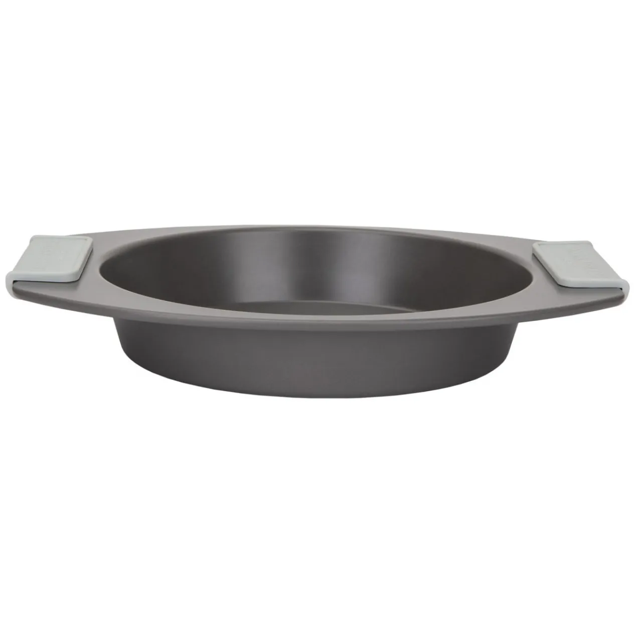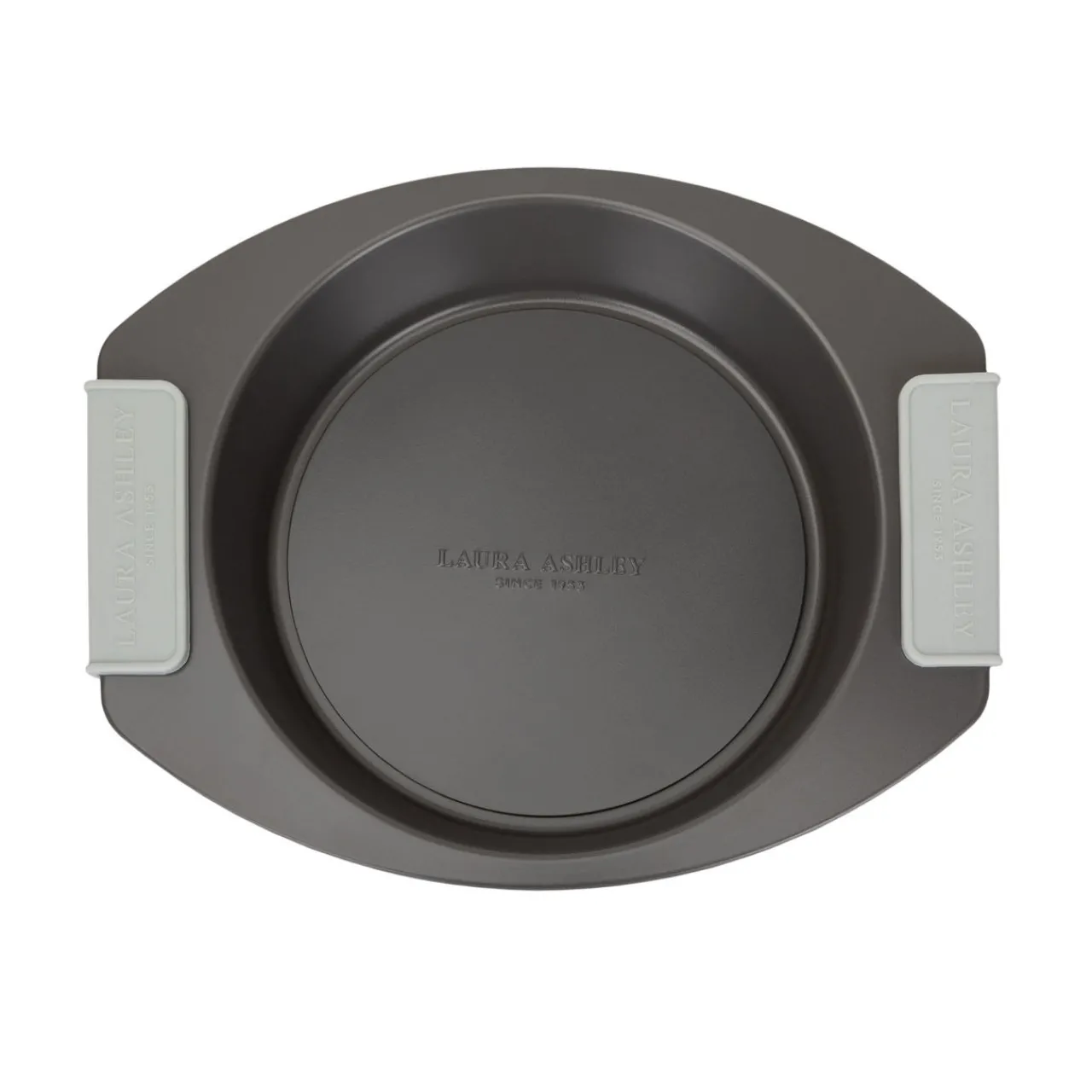 - Round cake tin, loose base, silicone handles, brand logo details