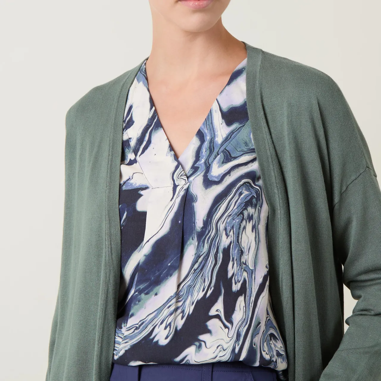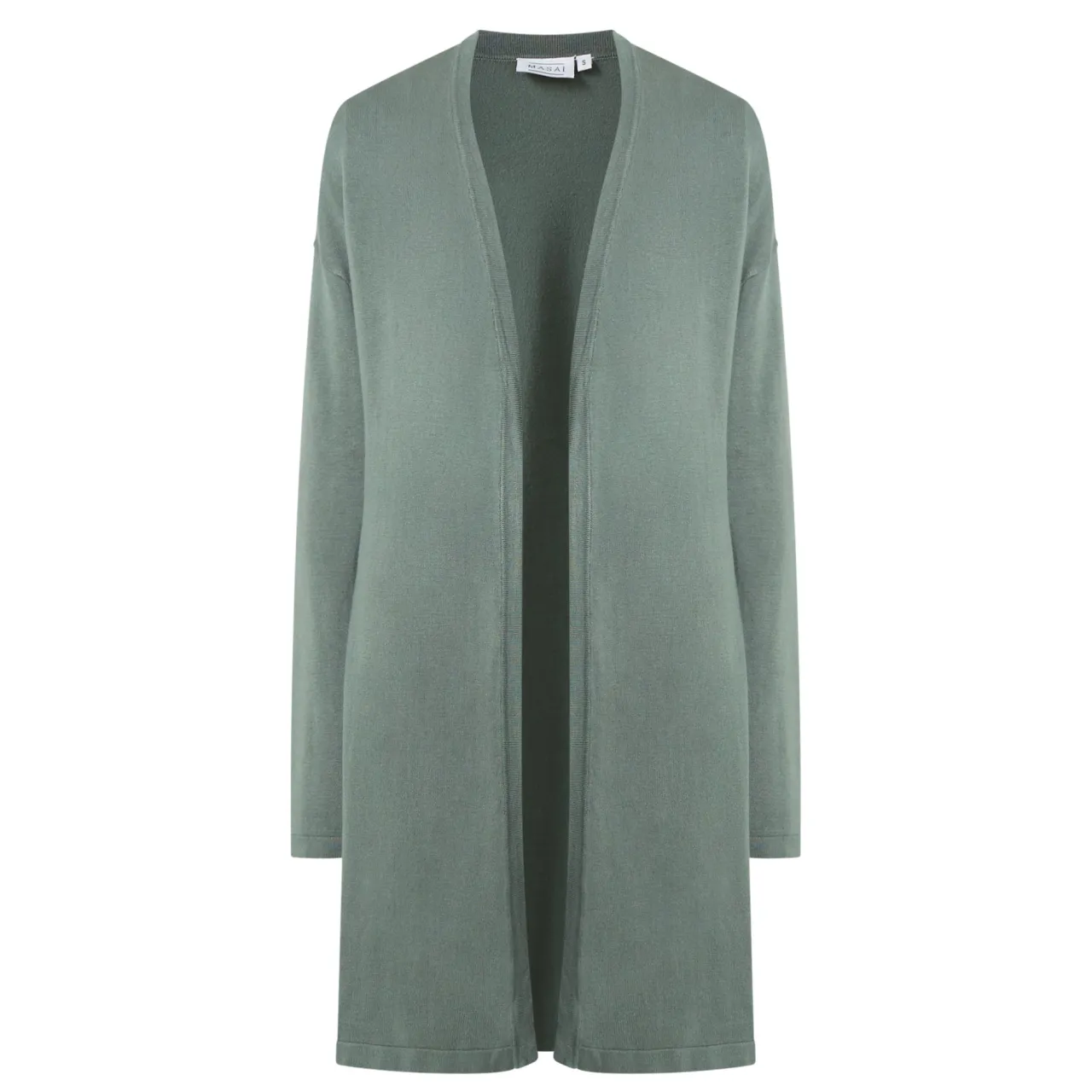- Open front design, long sleeves, dropped shoulders, tonal stitching, smooth fabric