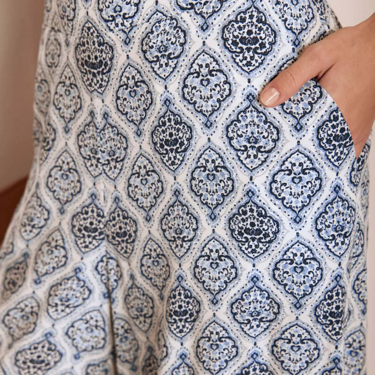 - Geometric print, wide-leg silhouette