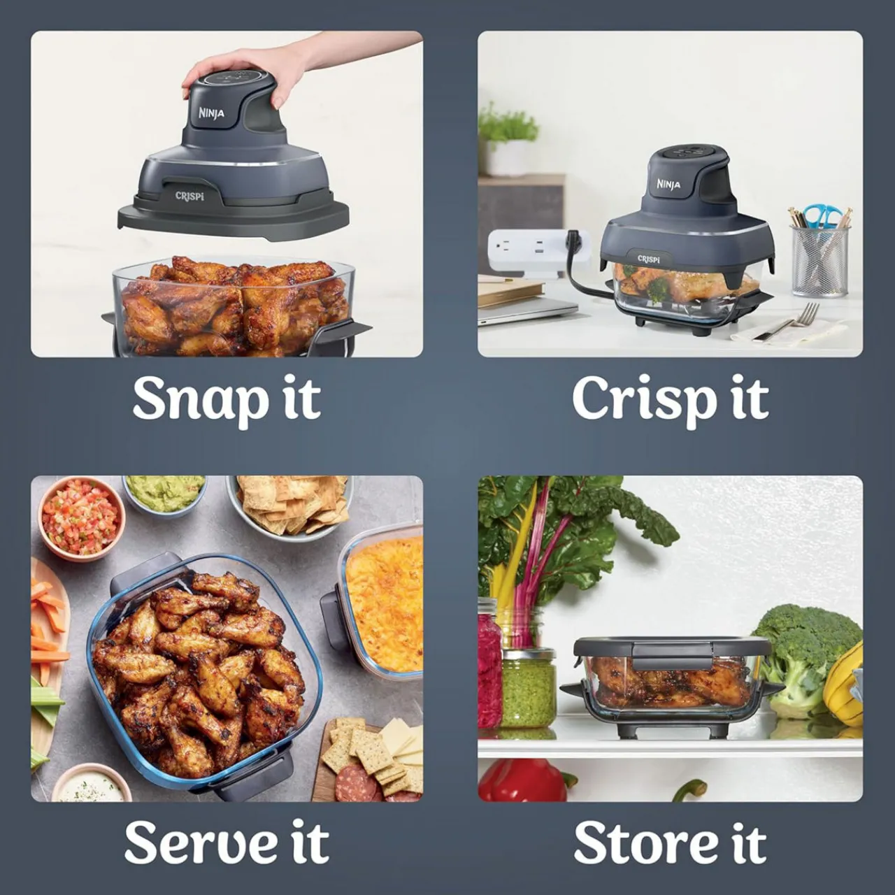 - ALL-IN-ONE SYSTEM: Includes the Ninja Crispi PowerPod, 4-qt and 6-cup TempWare glass containers, and 2 storage lids.