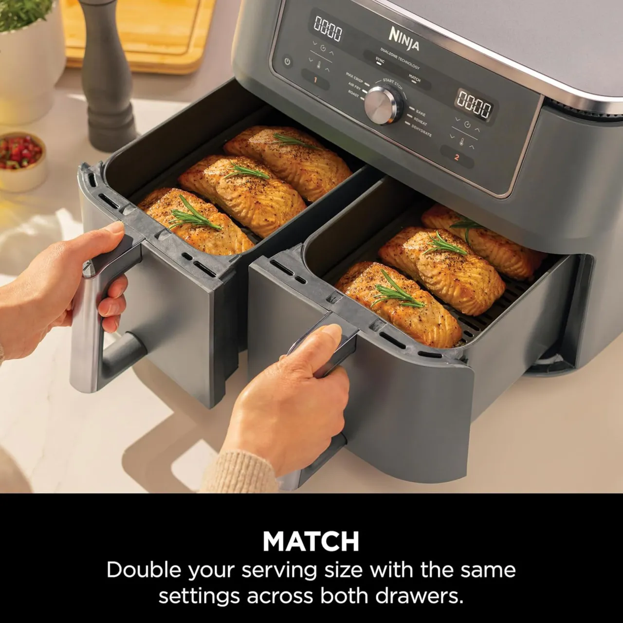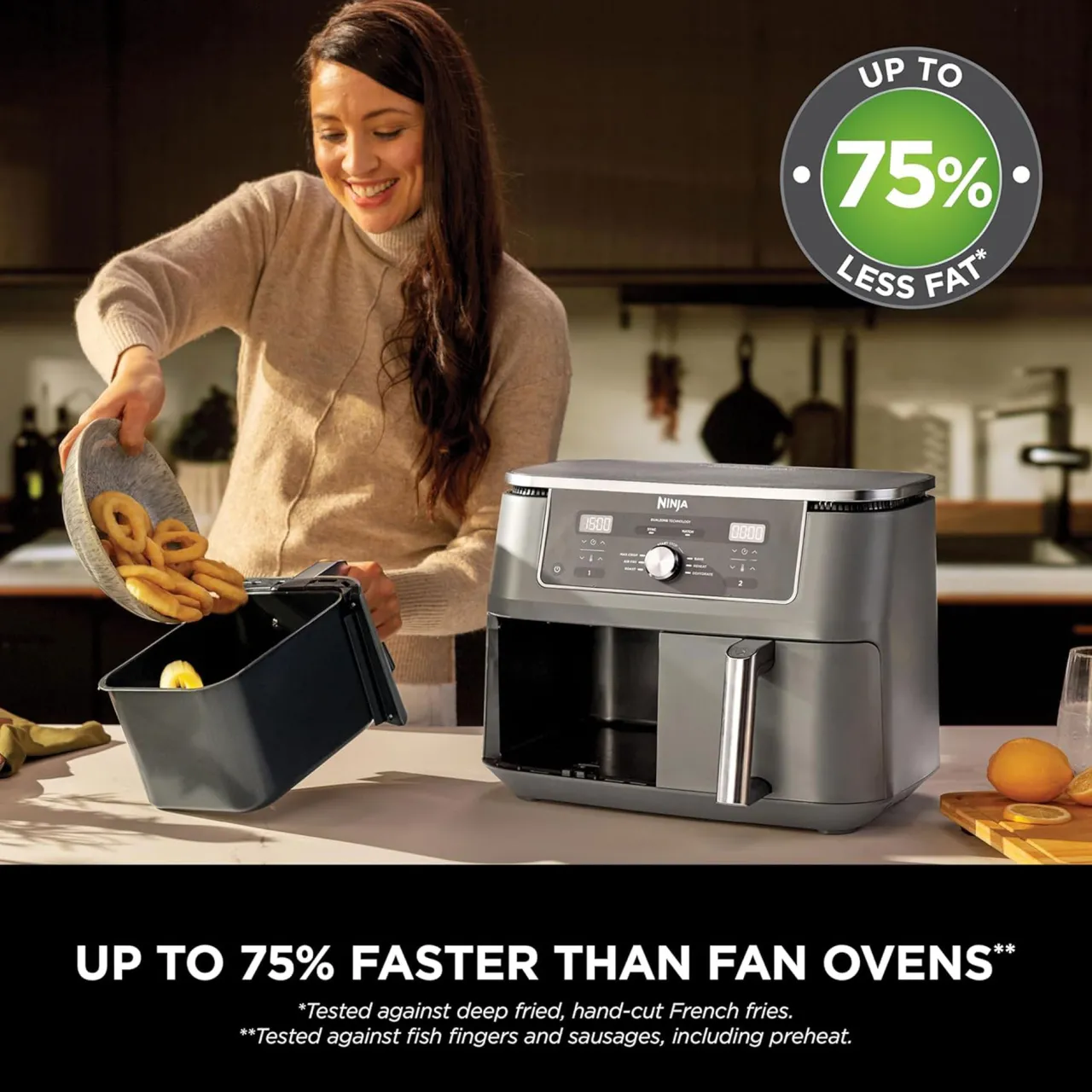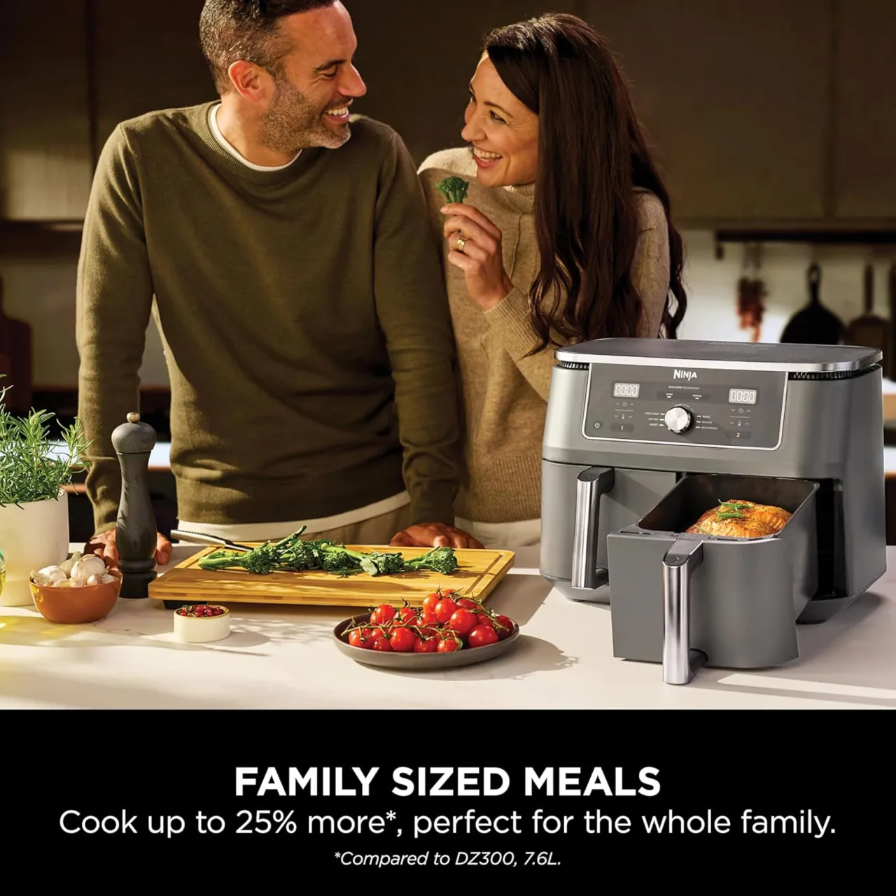 Dual Zone cooking just got abrand new look. Meet the large capacity air fryer that cooks 2 foods, 2 ways, and finishes at the same time – now with an updated design and sleek, dark grey metallic trim.