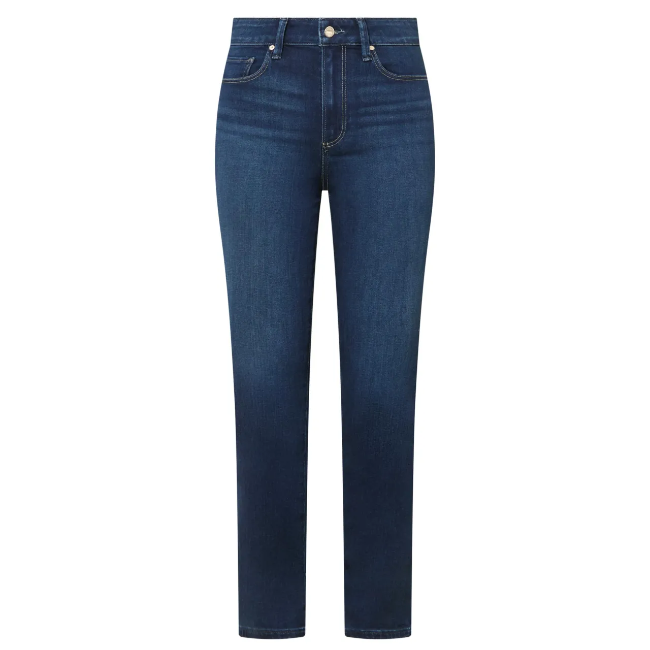 - Slim fit, high-rise, tapered leg, belt loops, five pockets, brand patch at back, zip and button fly
